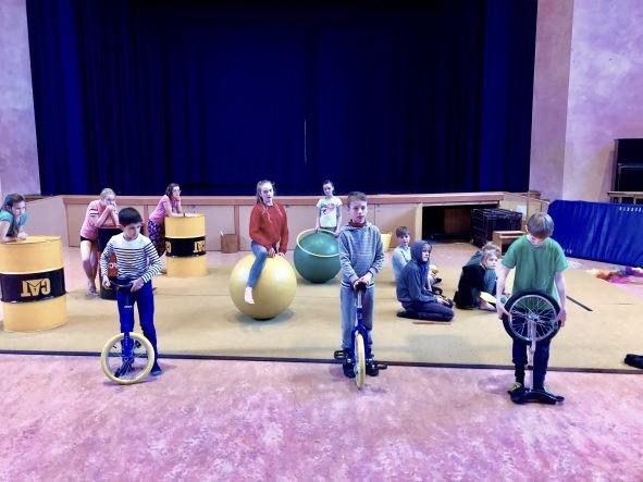 De allereerste circusles in de turnzaal van 'De Luchtballon'. Er waren 6 leerlingen.