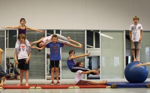 De allereerste circusles in de turnzaal van 'De Luchtballon'. Er waren 6 leerlingen.