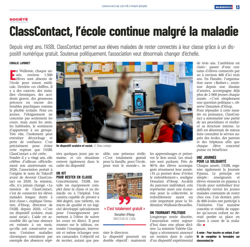 Vous trouverez ici les dernières informations, nos rapports annuels, nos publications et des articles de presse au sujet de ClassContact