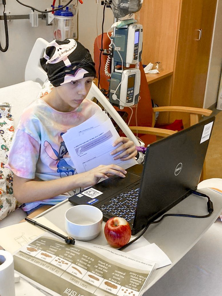 Abigaël, bientôt 12 ans, n’a pas pu faire sa rentrée en 6e primaire à cause de la maladie. Grâce à ClassContact et à sa nouvelle école, elle a pu garder un lien avec l’école et revivre comme une enfant.