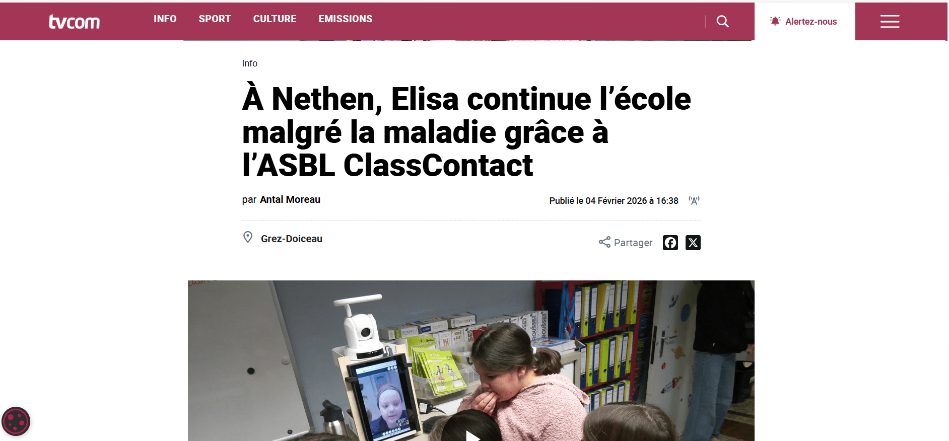 Le média TVcom a récemment consacré un article et une vidéo à ClassContact, mettant en lumière l’impact concret de notre dispositif auprès des enfants durablement absents pour raisons médicales.