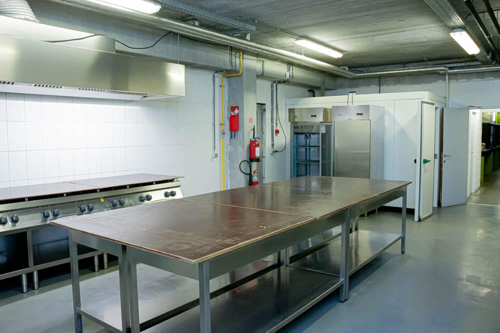 In de volledige hal zijn een ‘kleine toog’ beschikbaar met 3 tapkranen en flessenfrigo’s. In de ‘grote toog’ zijn 6 tapkranen voorzien met flessenfrigo’s. Achteraan de respectievelijke togen bevinden zich de bergruimtes voor de dranken. Tussen de kleine en grote toog situeert zich de keuken met een aparte werkruimte voor warme en koude gerechten. Voor de keuken mag gewerkt worden met een cateraar naar keuze. In de keuken bevindt zich nog een bijkomende koelcel waar dranken kunnen ondergebracht worden, teneinde deze ten allen tijde koel te kunnen houden, ook bij grote evenementen.