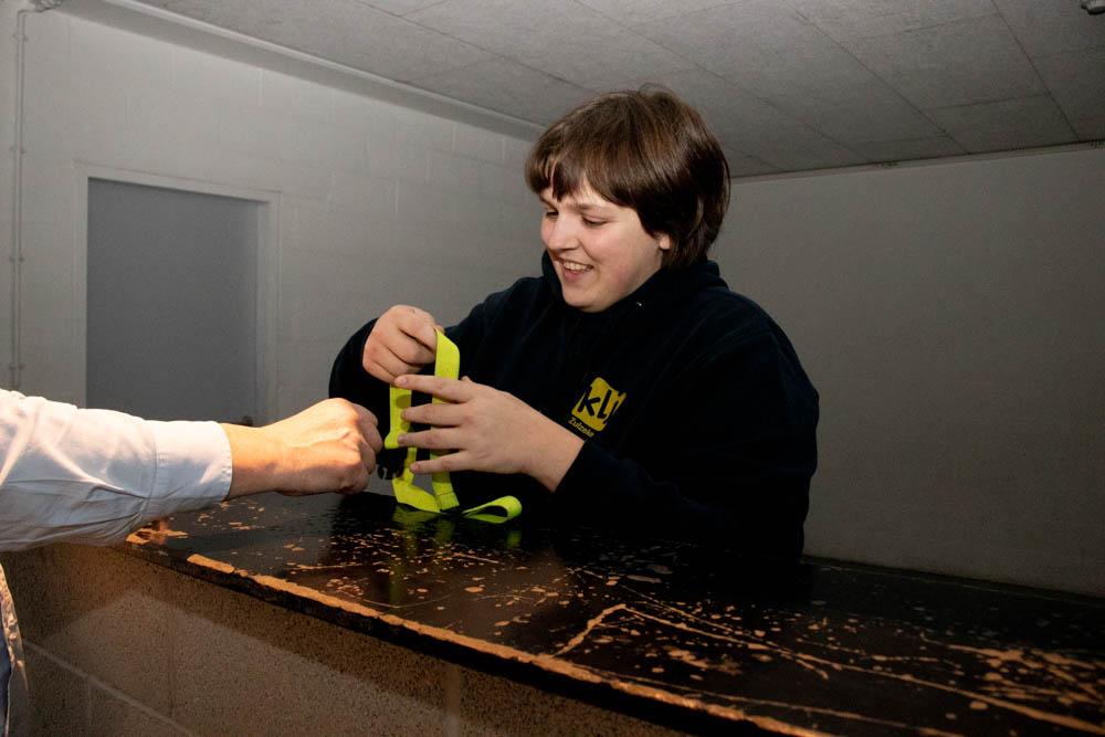 Aan de hoofd in- en uitgang vindt U een uitgebreide vestiaire met kapstokken die gratis ter beschikking zijn. Daarna komt u terecht in een foyer met toog die voor allerlei doeleinden kan gebruikt worden, zoals receptie, ontvangst gasten, coktailbar of apres-concertruimte.