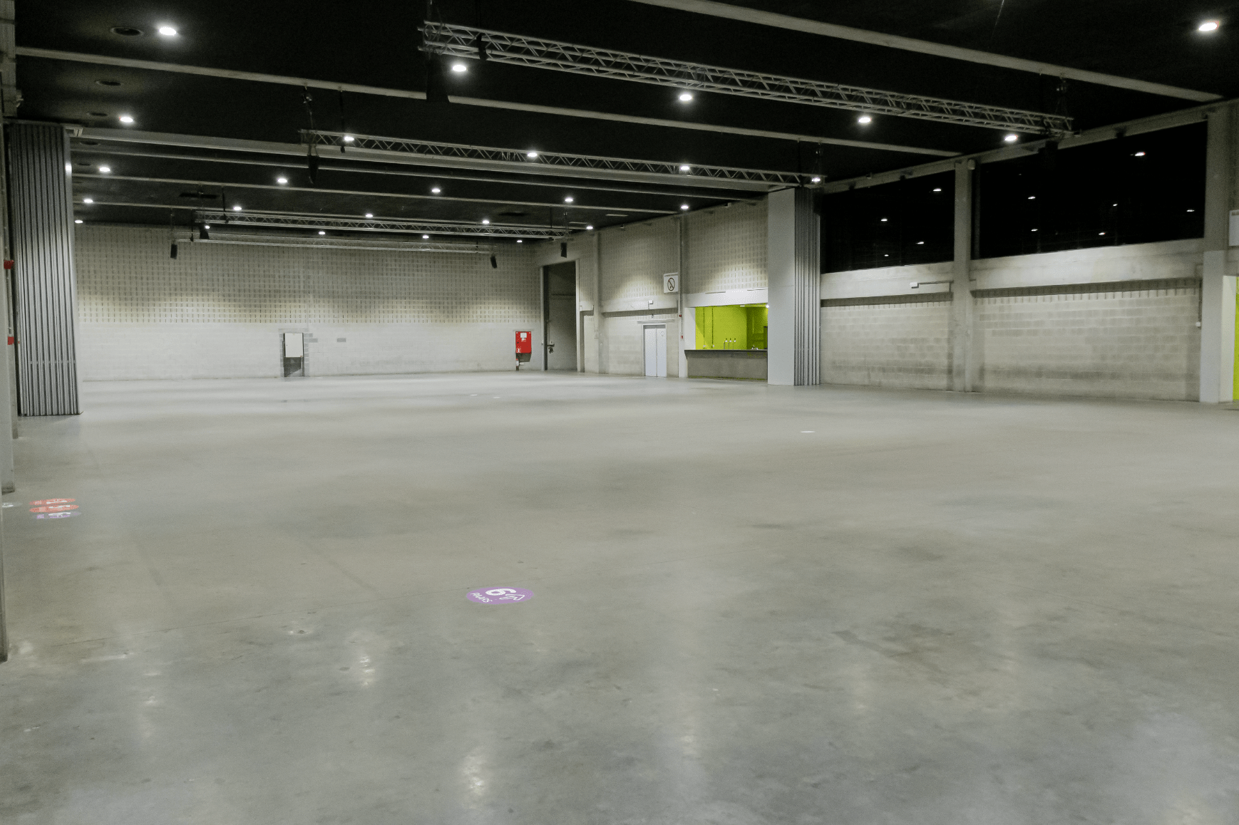 In de volledige zaal zijn 2 electriciteitspunten voorzien : 2 x 32A + 2 x64A + 1 x 125A.