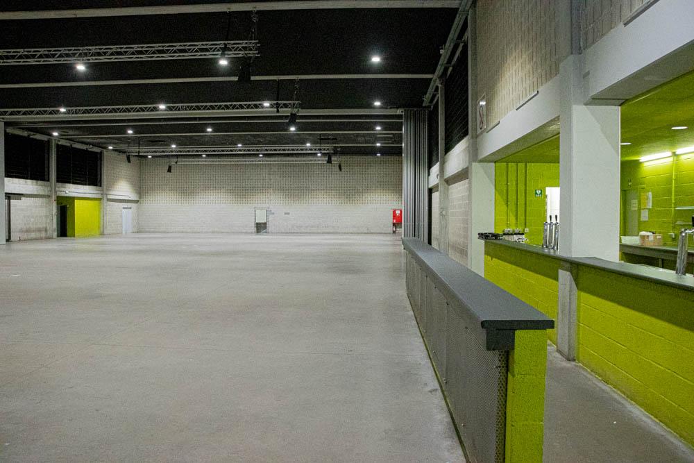 In de volledige hal zijn een ‘kleine toog’ beschikbaar met 3 tapkranen en flessenfrigo’s. In de ‘grote toog’ zijn 6 tapkranen voorzien met flessenfrigo’s. Achteraan de respectievelijke togen bevinden zich de bergruimtes voor de dranken. Tussen de kleine en grote toog situeert zich de keuken met een aparte werkruimte voor warme en koude gerechten. Voor de keuken mag gewerkt worden met een cateraar naar keuze. In de keuken bevindt zich nog een bijkomende koelcel waar dranken kunnen ondergebracht worden, teneinde deze ten allen tijde koel te kunnen houden, ook bij grote evenementen.