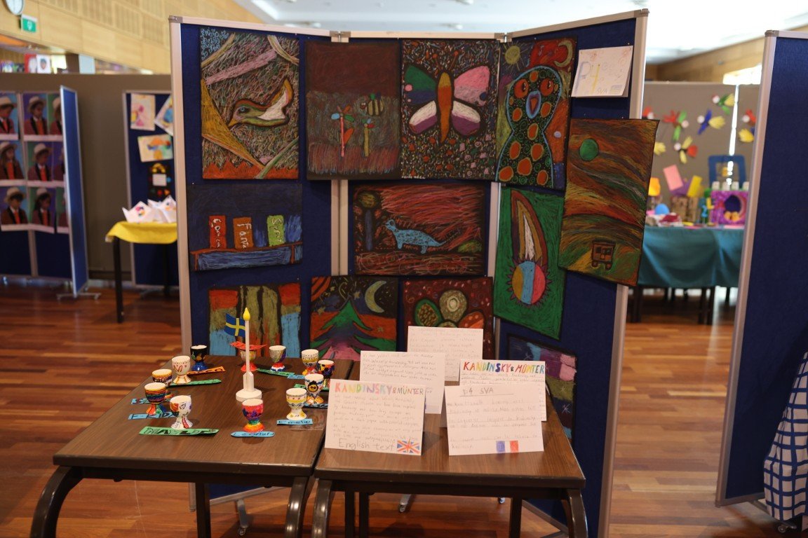 The primary school art exhibition *Imagination Without Boundaries*, organised by Ms Silvana Cigognini and Mr Bernardino Pacheco, offered a true immersion in a rich and inspiring creative world, drawing inspiration from the works of Wassily Kandinsky and Gabriele Münter, iconic figures of the Der Blaue Reiter movement.