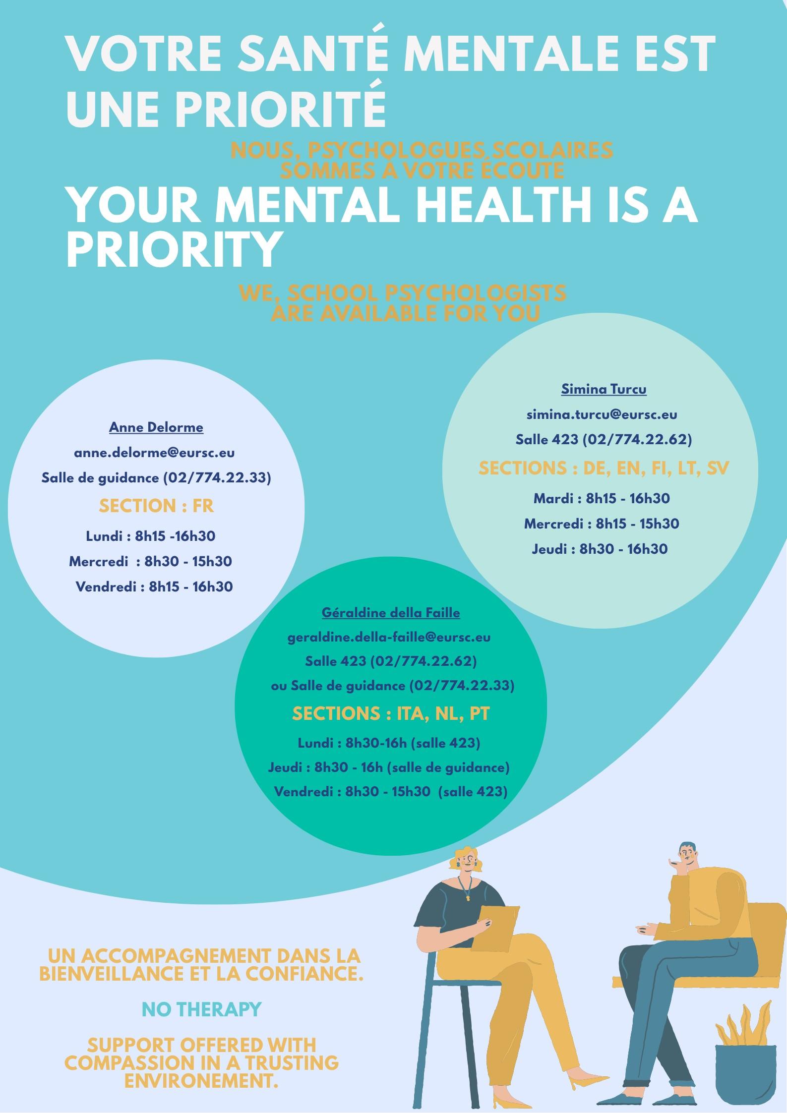 Room 423 : 02/774.22.62 or salle de guidance: 02/774.22.33