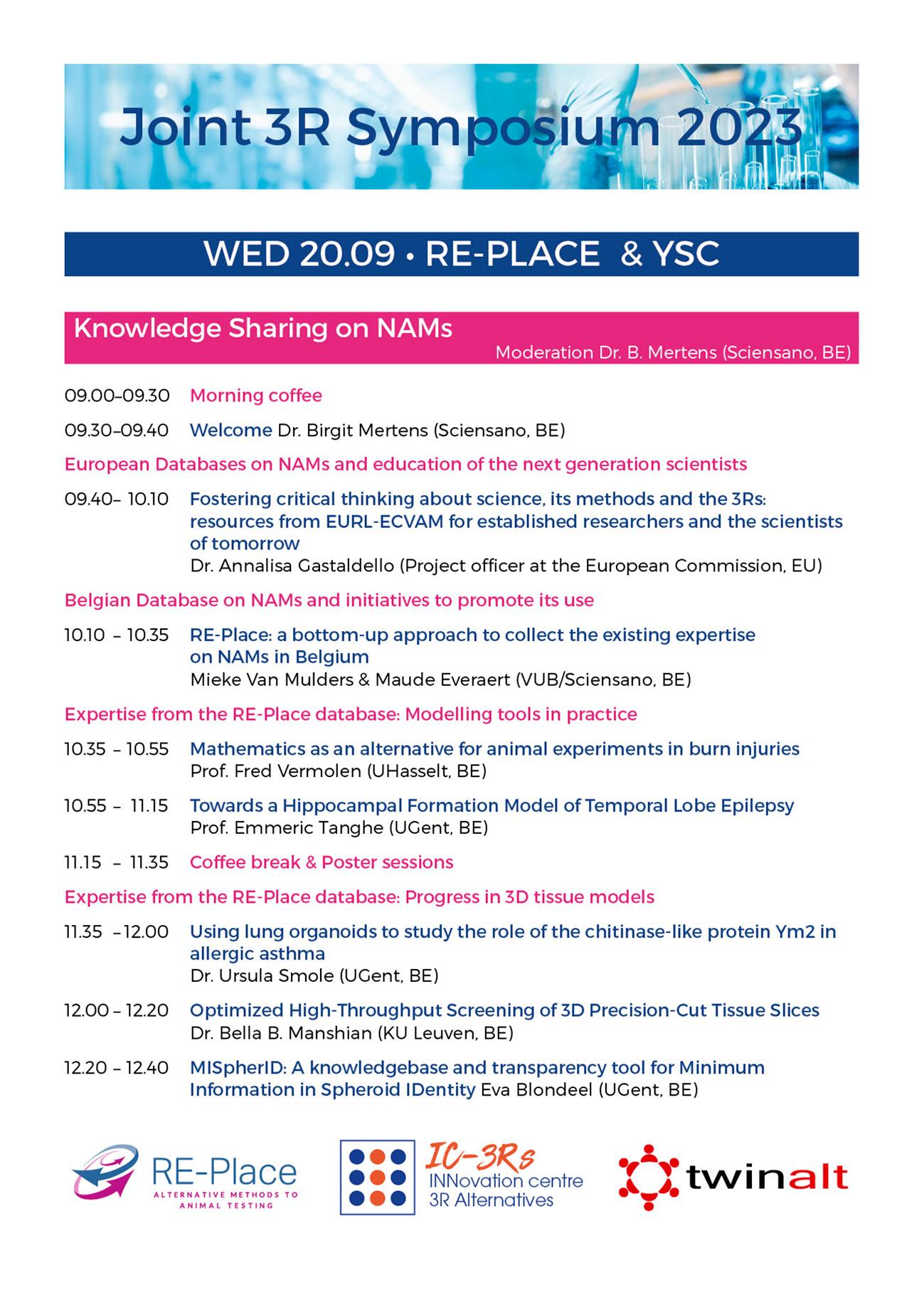RE-Place is organizing the morning session on Wednesday the 20th of September. RE-Place is a scientific collaboration between the VUB and Sciensano, the Belgian institute of public health. RE-Place collects different types of replacement methods in one central database for which experience and expertise exists in Belgium. Six experts from the RE-Place database will be invited to present their work. During the afternoon session, young researchers will have the opportunity to competitively present their 3R research. Visit the ‘Call for abstracts’ page for more information.