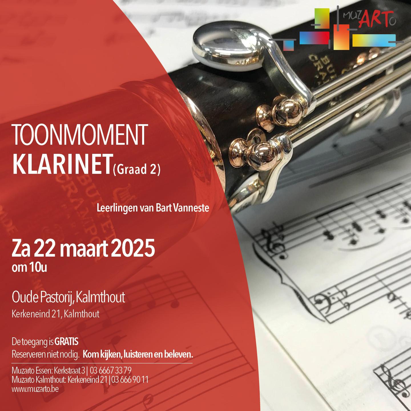 Toonmoment door de leerlingen klarinet graad 2 (leerkracht Bart Vanneste) om 10u in de Oude Pastorij in Kalmthout.