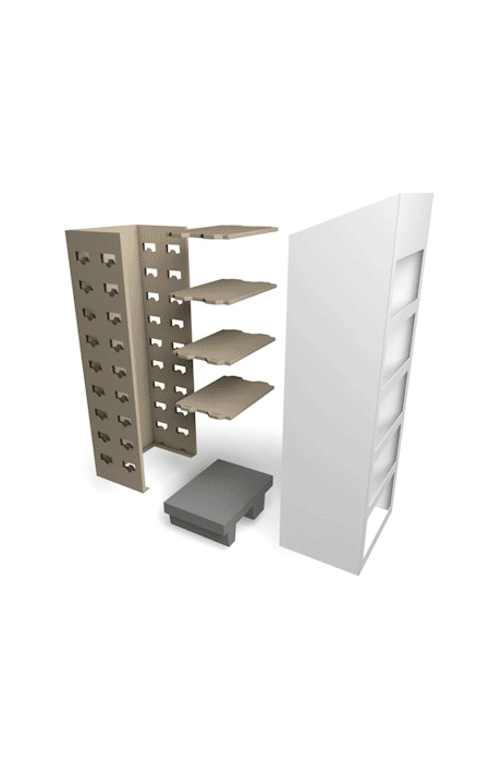 Un display Ursus excelle par sa simplicité. Il se compose de seulement trois parties, que vous assemblez en un tournemain. La structure intérieure et les étagères sont constituées de deux types de carton solide. Les présentoirs sont disponibles en deux formats : 40 x 40 et 40 x 60. Et tout le reste, vous le déterminez vous-même. Laissez libre cours à votre créativité.