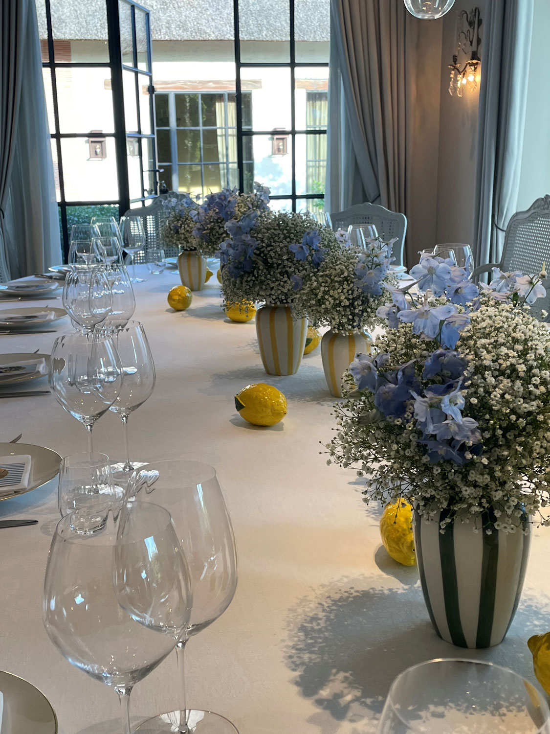 Van bloemrijke eyecatchers bij de entree, stijlvolle tafeldecoratie voor het diner, tot podiumstyling en de volledige aankleding van de eventlocatie – wij zorgen voor een florale beleving met impact.