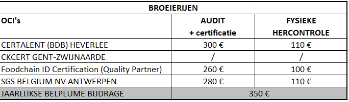 - 2 keer per jaar wordt een audit uitgevoerd op een Belplume broeierij.