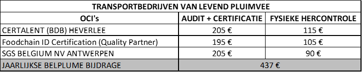 - Belplume factureert de Belplume bijdrage rechtstreeks aan het slachthuis.