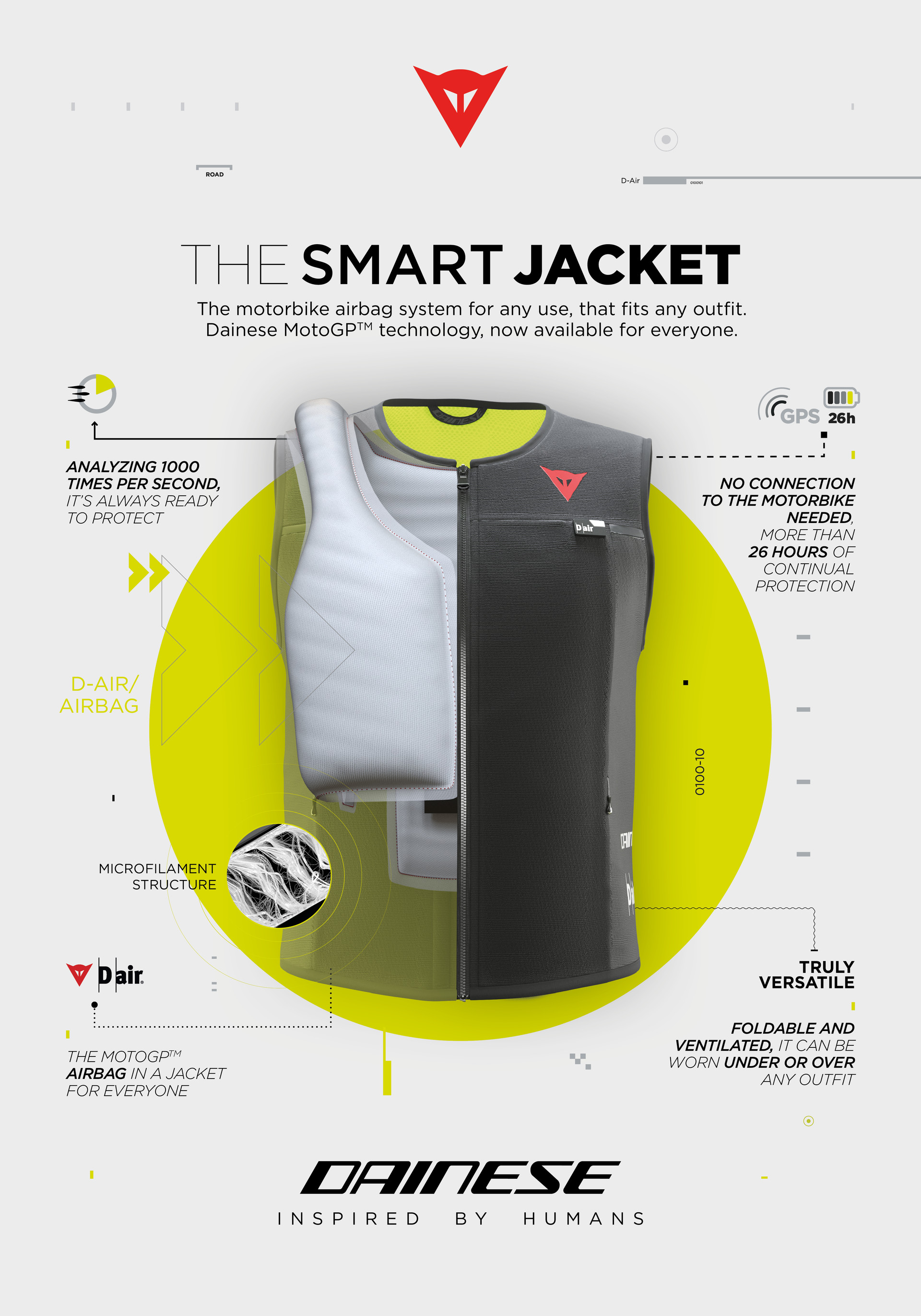 This intelligent protection system detects dangerous situations and automatically inflates special airbags around the rider's body.