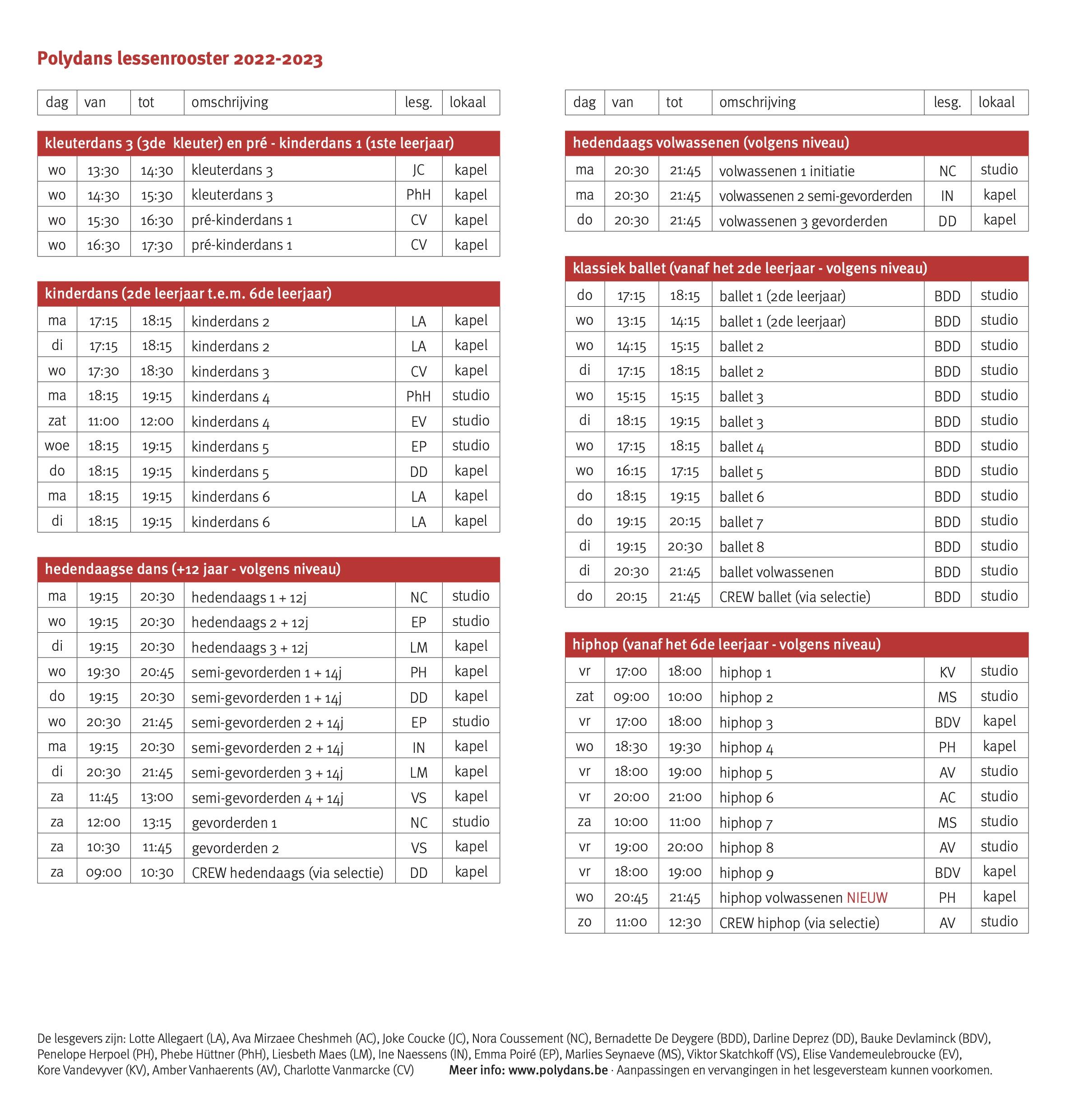 Het lessenrooster voor het dansjaar 2025-2026 kan je hiervinden.