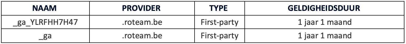 Artikel 4. Welke cookies gebruikt Roteam, voor welk doel en wat is de geldigheidsduur?