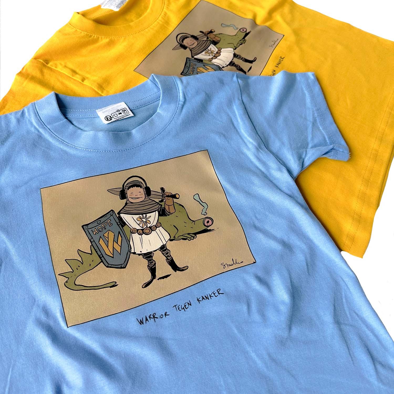 Warre, een heel dapper kereltje, kreeg plots te horen dat hij een kwaadaardige agressieve bottumor had. Moedig als hij is, wou hij ook andere kinderen aanmoedigen om te blijven vechten. Om centjes in te zamelen voor verder onderzoek, wou hij gepersonaliseerde t-shirts en petjes laten maken met zijn 'Warrior'-tekening erop. Uiteraard werkten wij hier graag voor de volle 200% aan mee !
