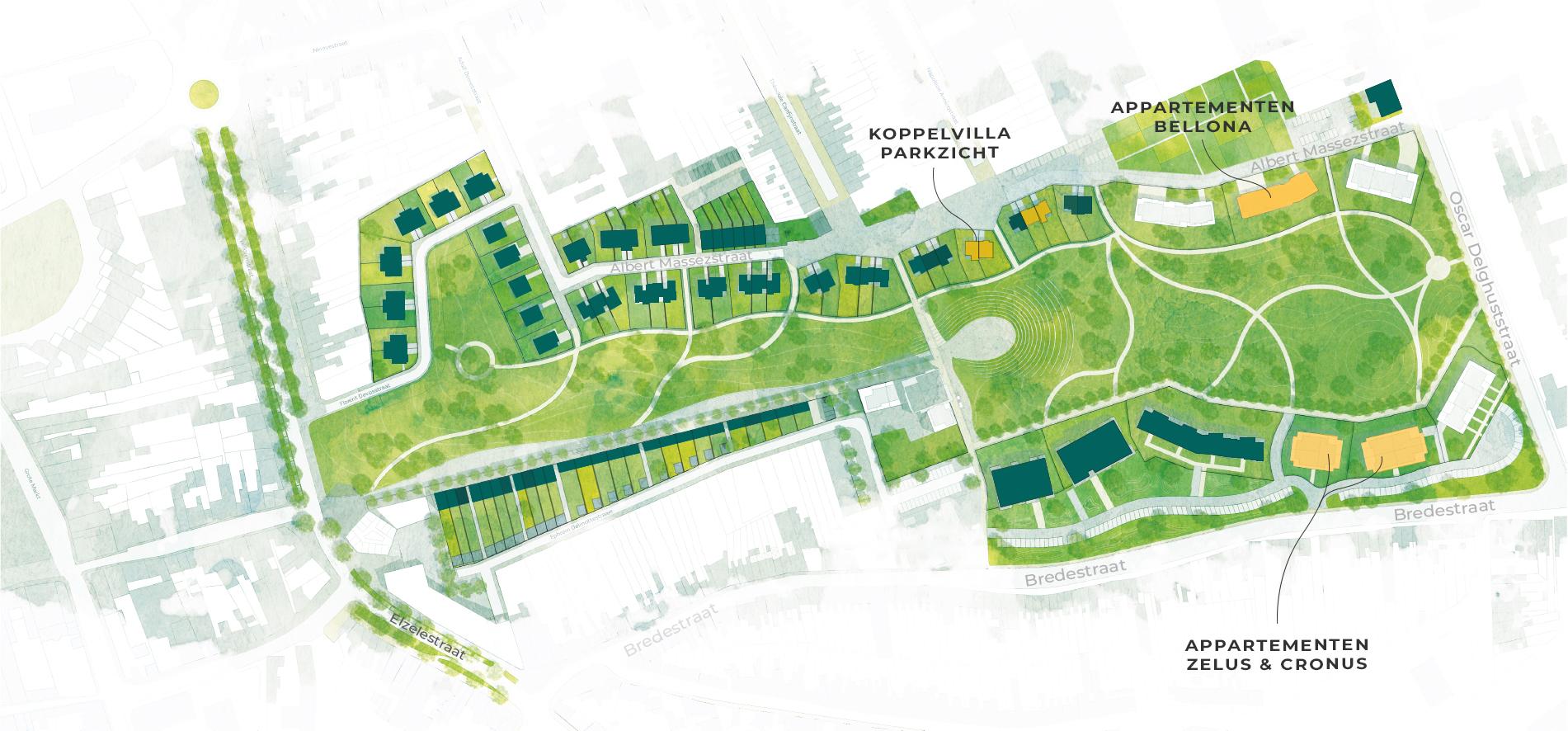 Of je nu kiest voor een ruime woning of een modern appartement, elk woonvolume biedt licht, ruimte en maximaal comfort – met het park altijd binnen handbereik.