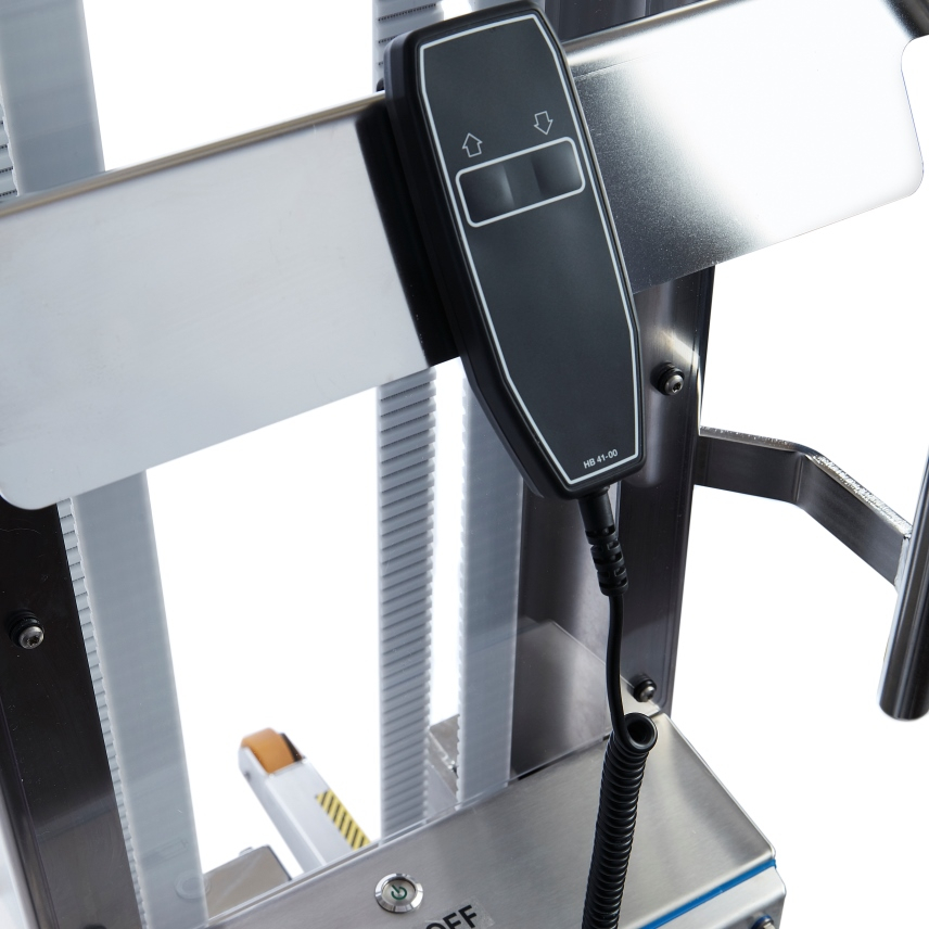 Ces appareils de levage sont fabriqués en acier inoxydable électropoli AISI304 et IP66 résistant à l'eau.Le E300 est équipé de série de roues ESD et d'un système d'échange de batteries.