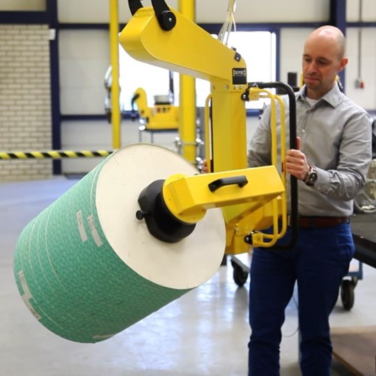 L'équilibreur pneumatique présente le grand avantage de mettre la charge en état d'apesanteur et de la manipuler avec la plus grande précision. Nous utilisons souvent cette solution pour soulever des rouleaux lourds, des tonneaux ou des articles plus spécialisés tels que des fûts, des caisses de bière, etc.