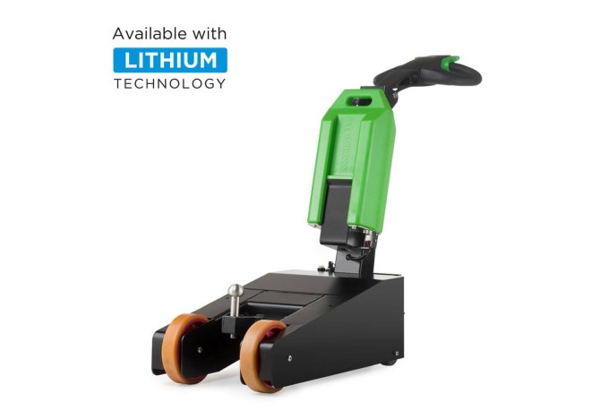 De machine is standaard uitgerust met een wisselaccu en verstelbare dissel. Optioneel kan ook een lithium accu gebruikt worden, wat de autonomie aanzienlijk verhoogt.