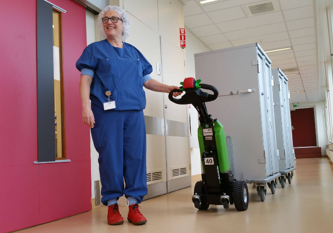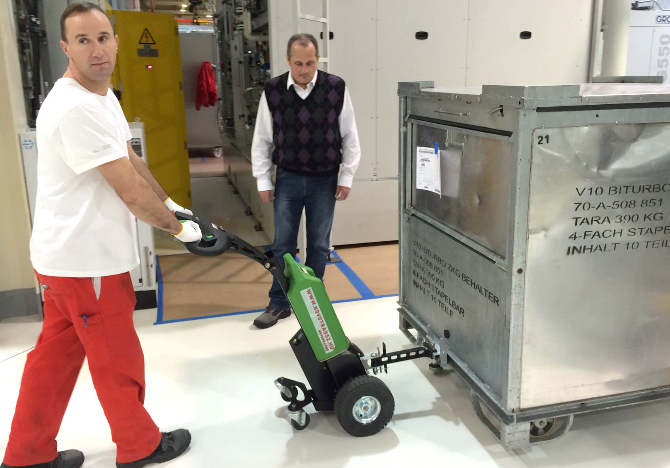 De machine wordt intensief gebruikt in interne en externe logistiek, en kan ook een breed assortiment aan verschillende trolleys verplaatsen, zoals rolcontainers, industriële karren en afvalcontainers.