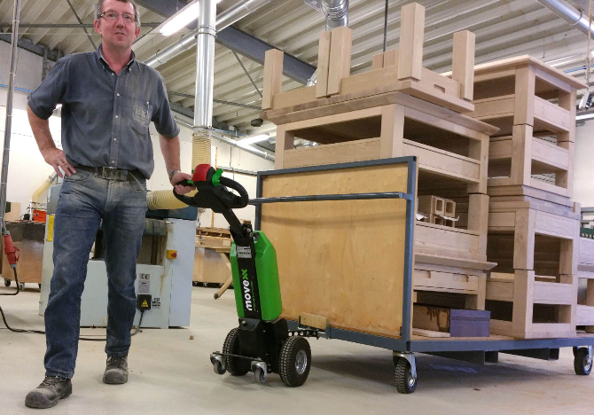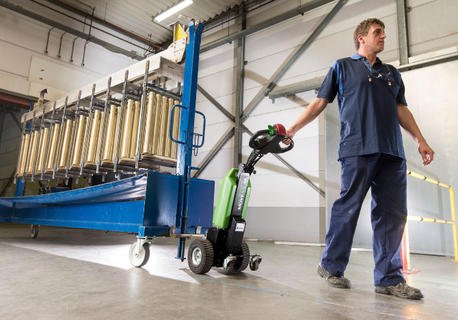 De elektrotrekker Movexx TT1000-T trekt lasten op wielen tot 1000 kg.