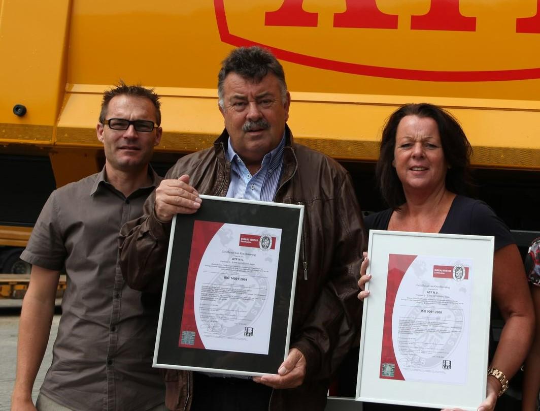 In 2012 behaalt ATF het ISO 14001-certificaat, als aanvulling op de bestaande VCA-P en ISO 9001. Deze internationale norm stelt extra eisen aan ons milieumanagementsysteem en bevestigt onze inzet voor een doordacht en verantwoord milieubeleid.