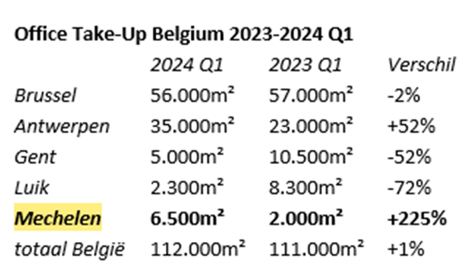 Mechelen piekt op Belgische kantorenmarkt
