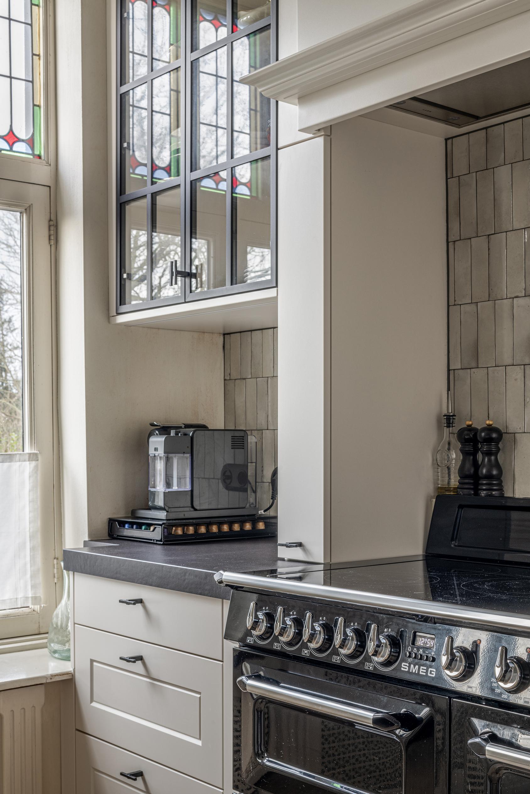 Deze keuken straalt authenticiteit uit en eert het verleden, met een doordachte invulling. Geïntegreerd in een karaktervol pand, werd de nieuwe keuken zorgvuldig afgestemd op de bestaande architectuur.
