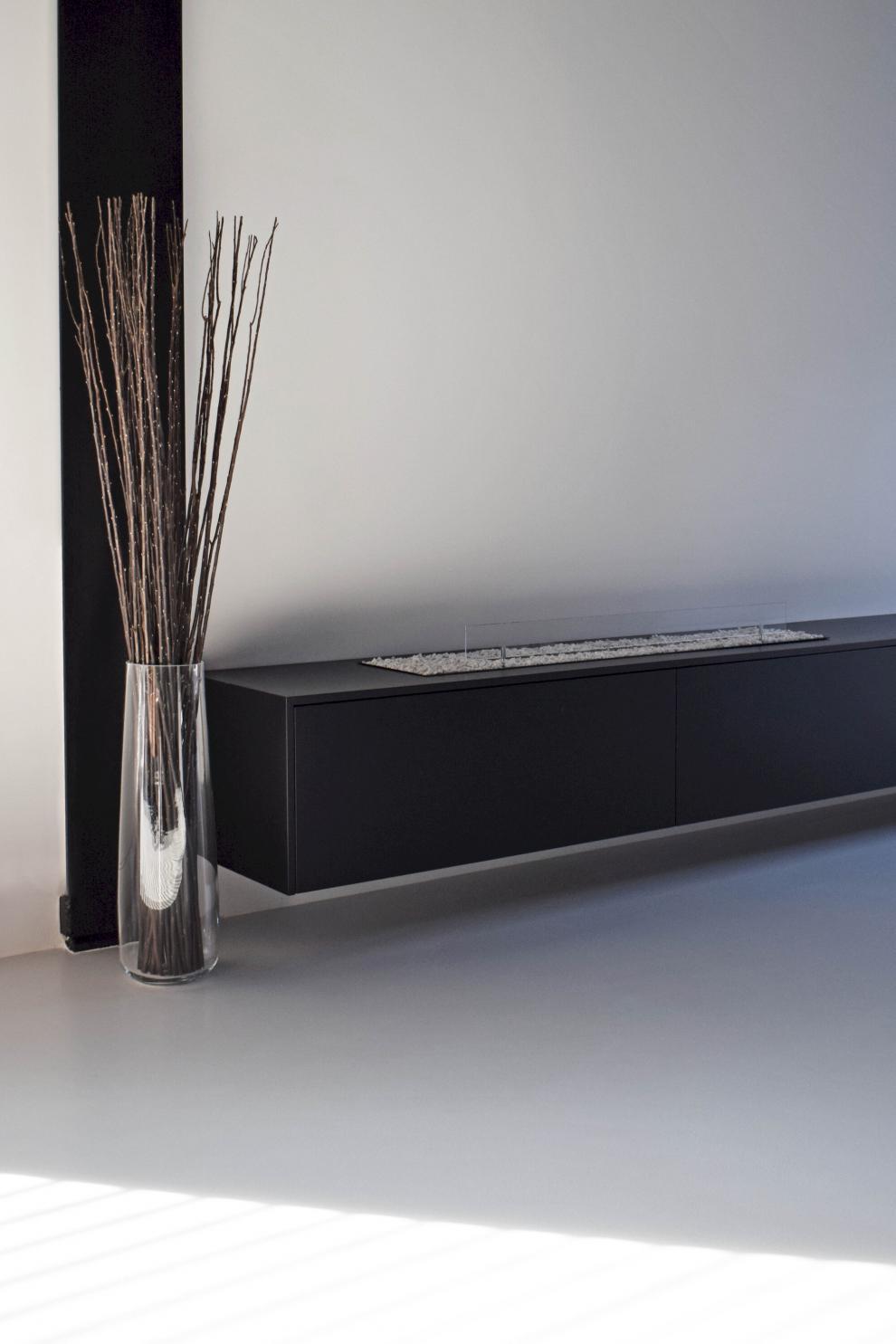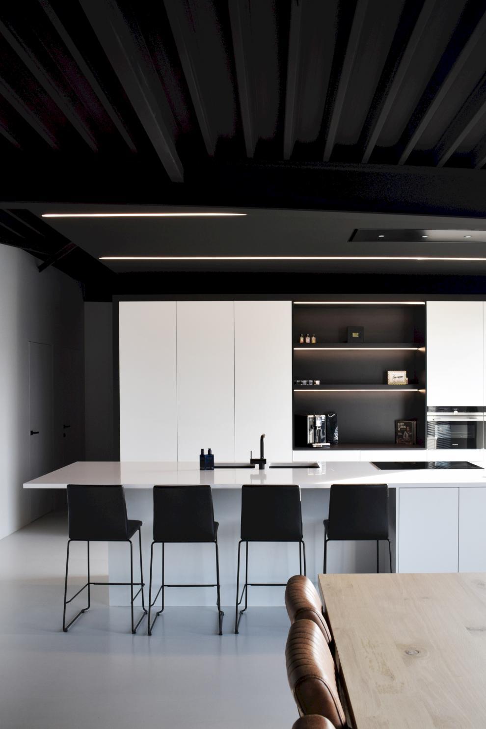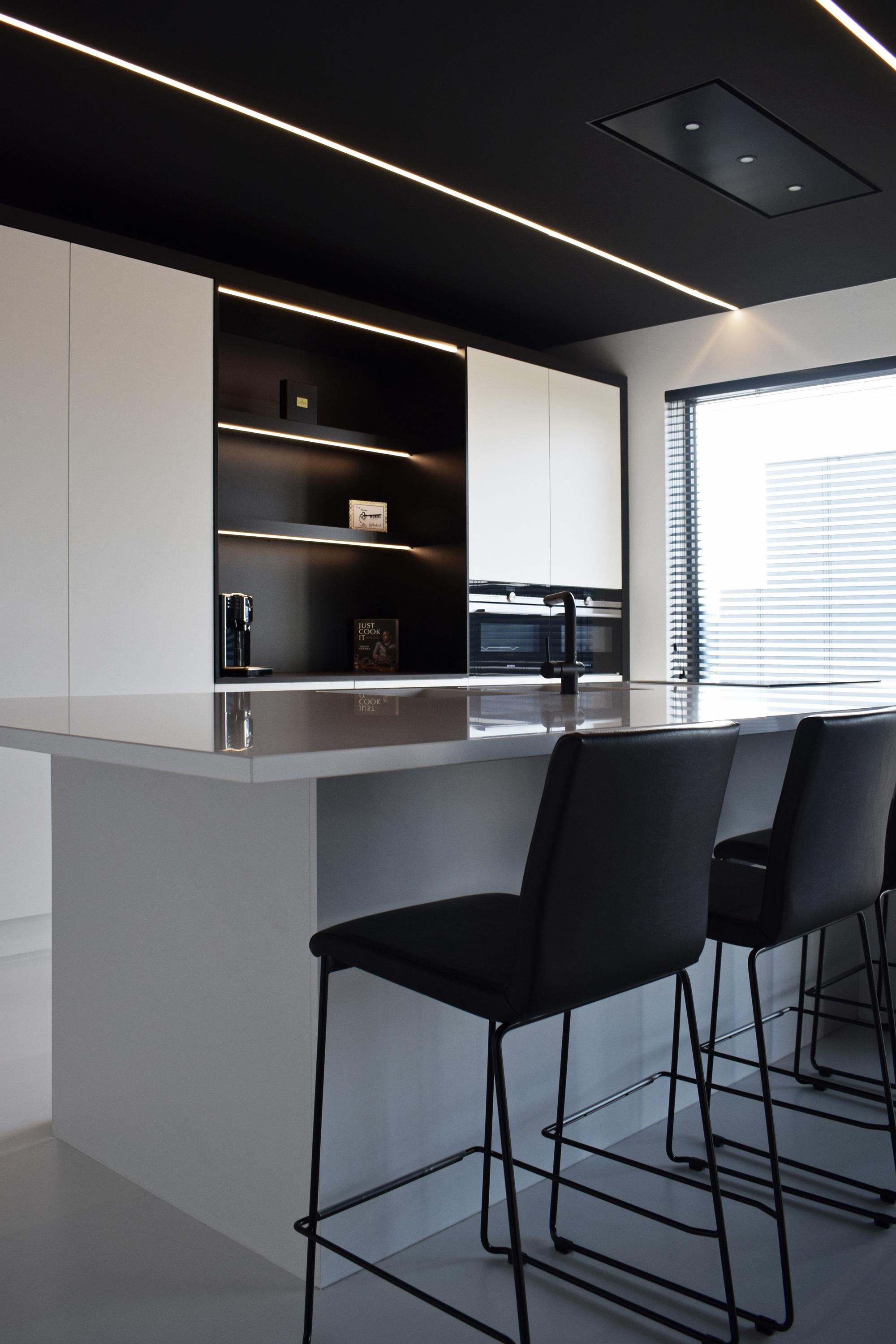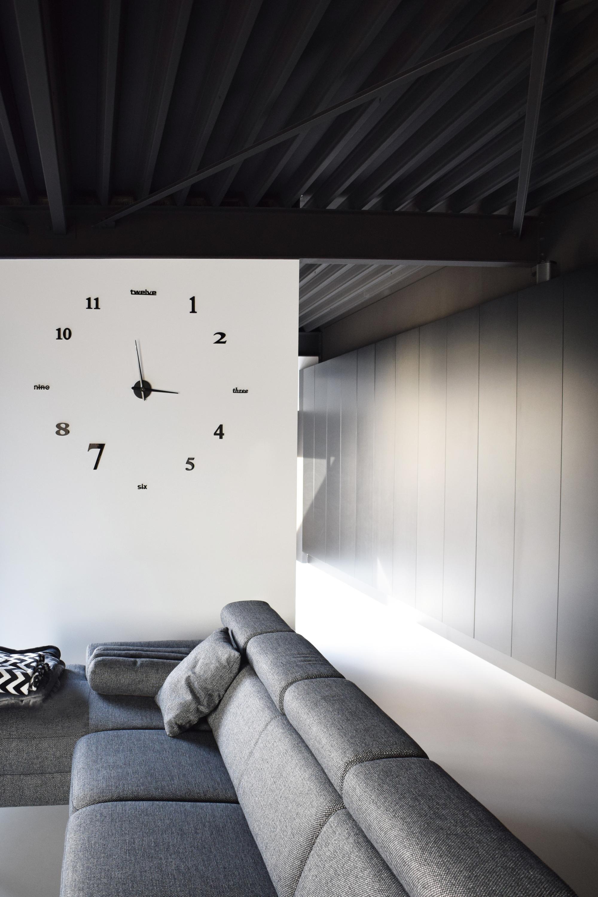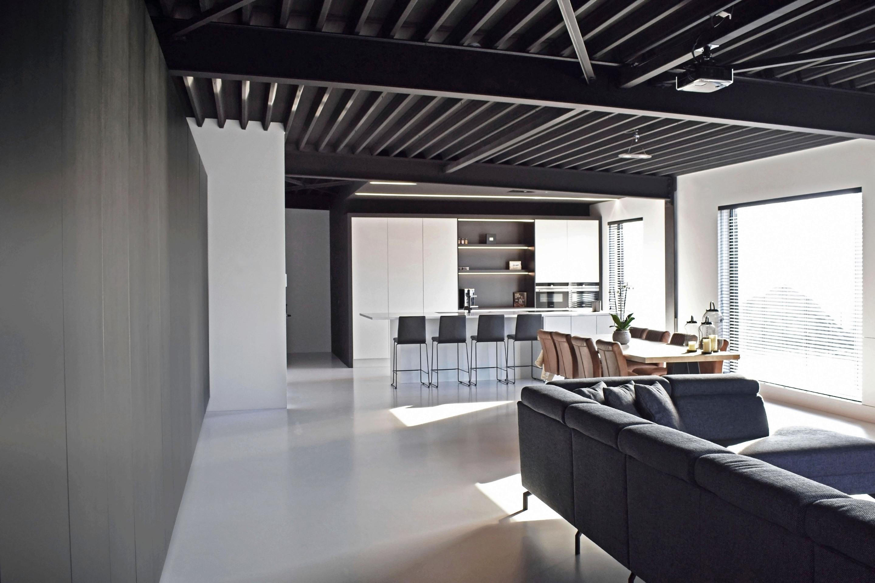 Minimalisme met industriële flair. Het strakke witte ontwerp wordt versterkt door zwarte, industriële elementen zoals metalen accenten en ruwe afwerkingen, voor een eigentijdse en krachtige look.