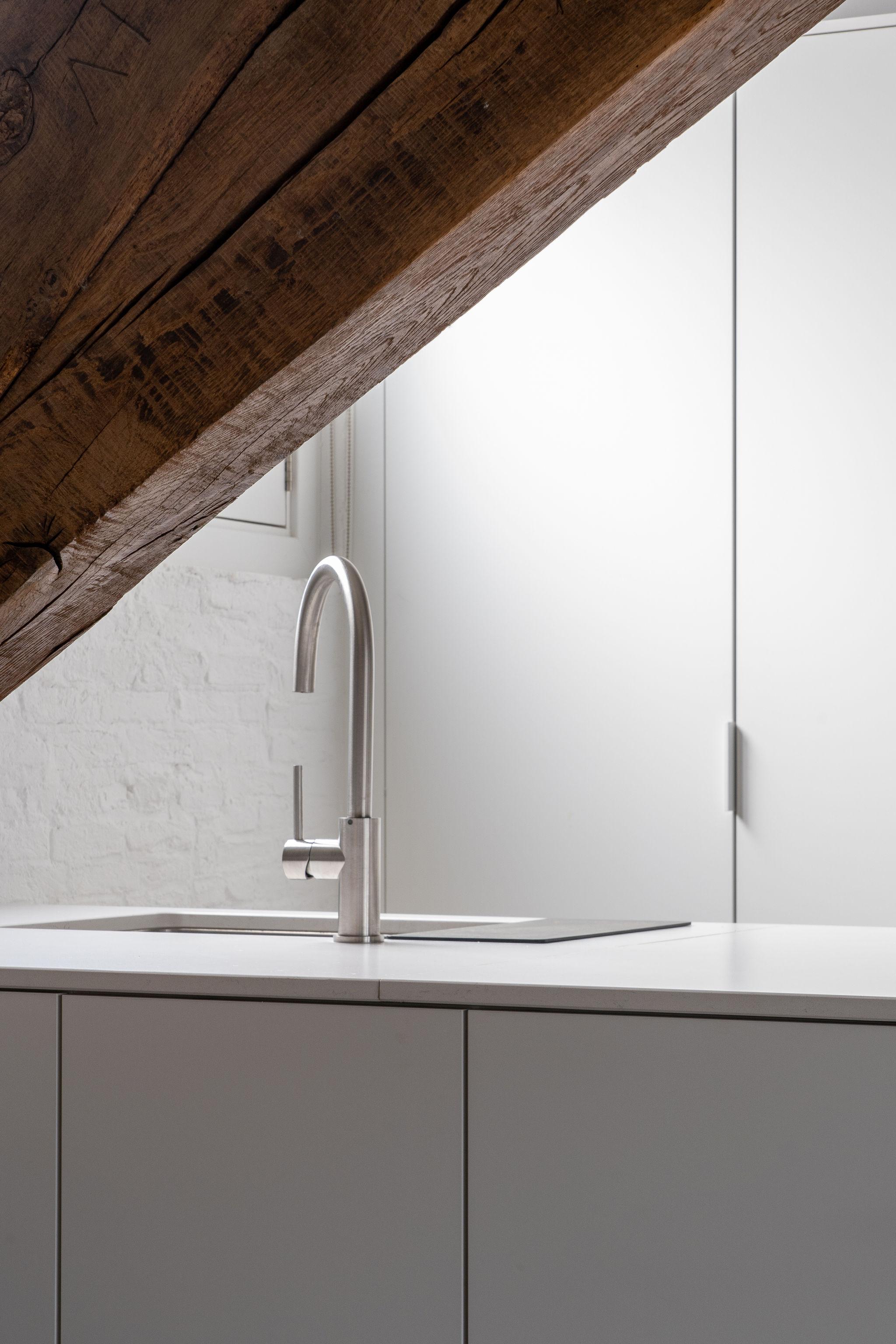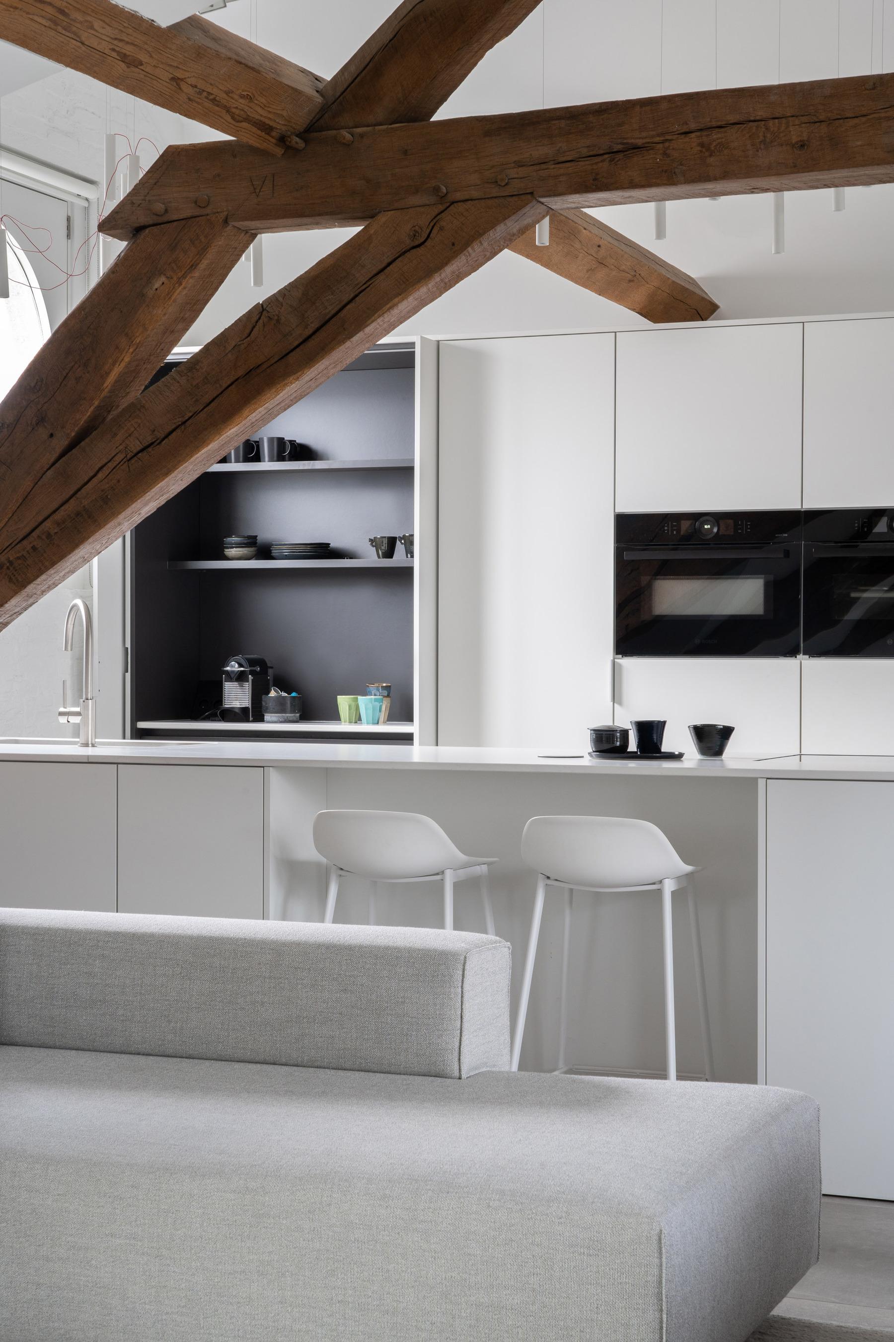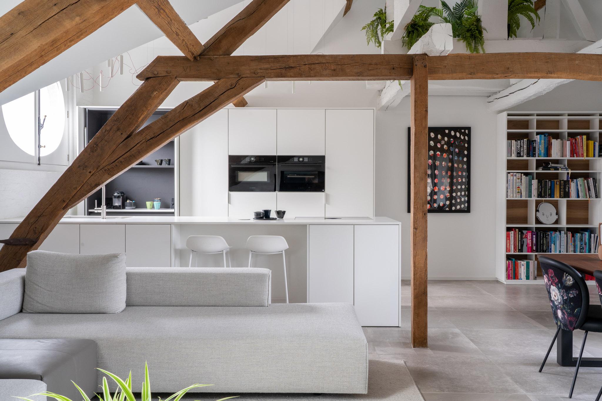 Bij deze renovatie stond het respecteren van de originele architectuur centraal. De uitdaging? Een moderne keuken ontwerpen die naadloos samenvloeit met het historische karakter van de woning.