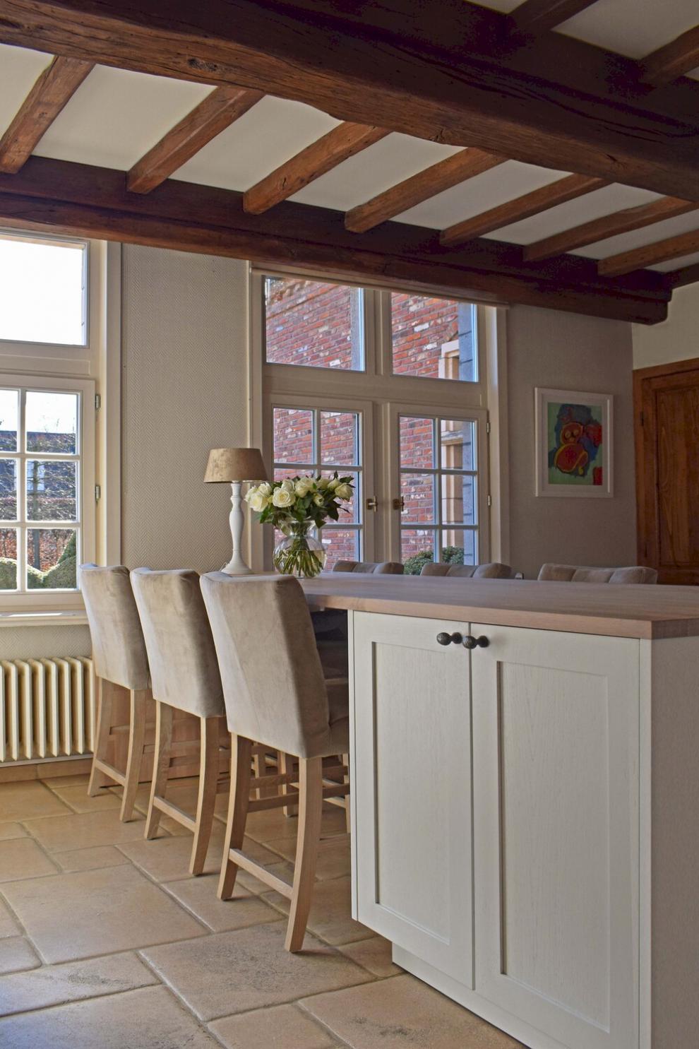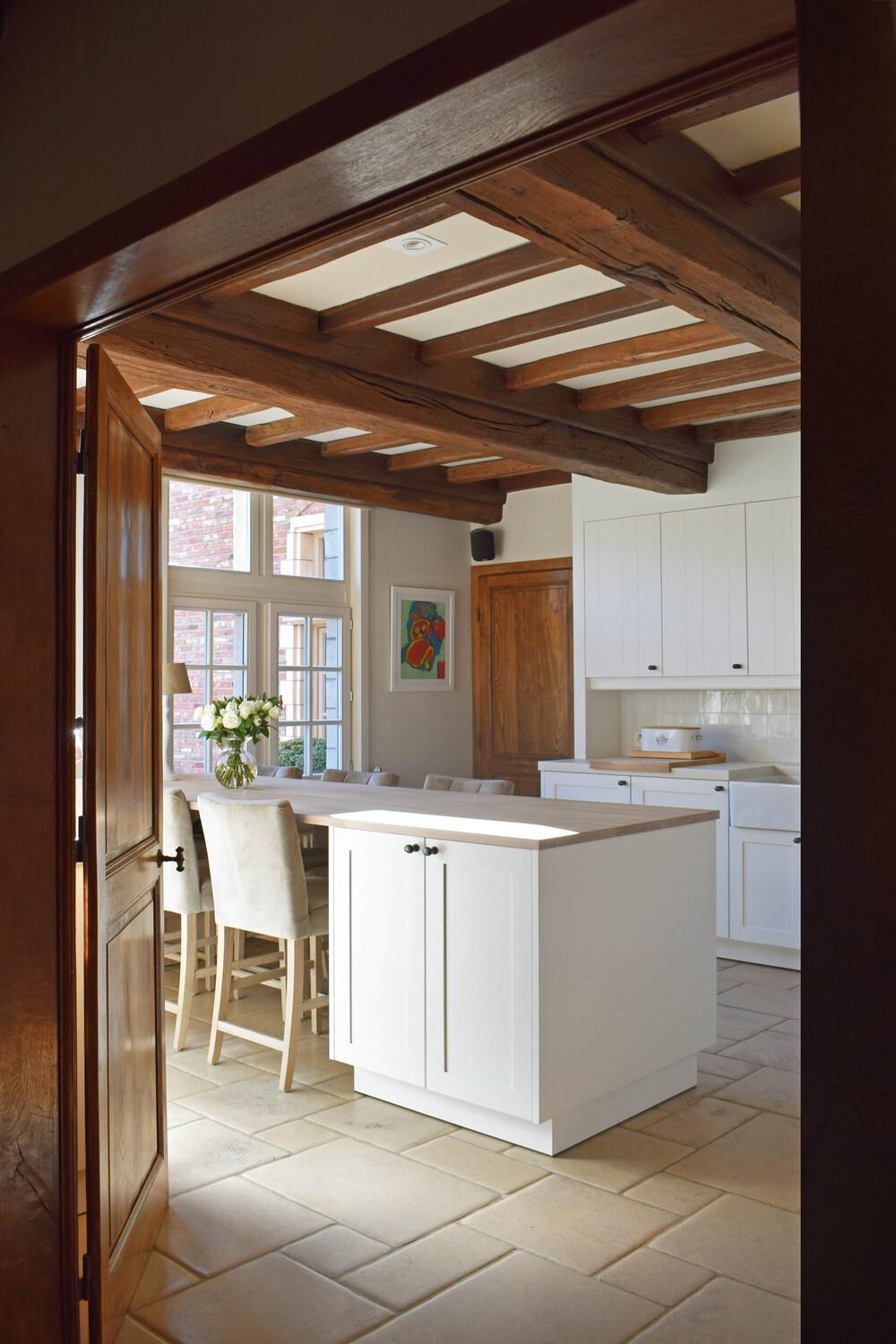 Architectuur en interieur in harmonie. Dit ontwerp respecteert de bestaande structuren en voegt een hedendaags karakter toe, zonder afbreuk te doen aan authenticiteit.