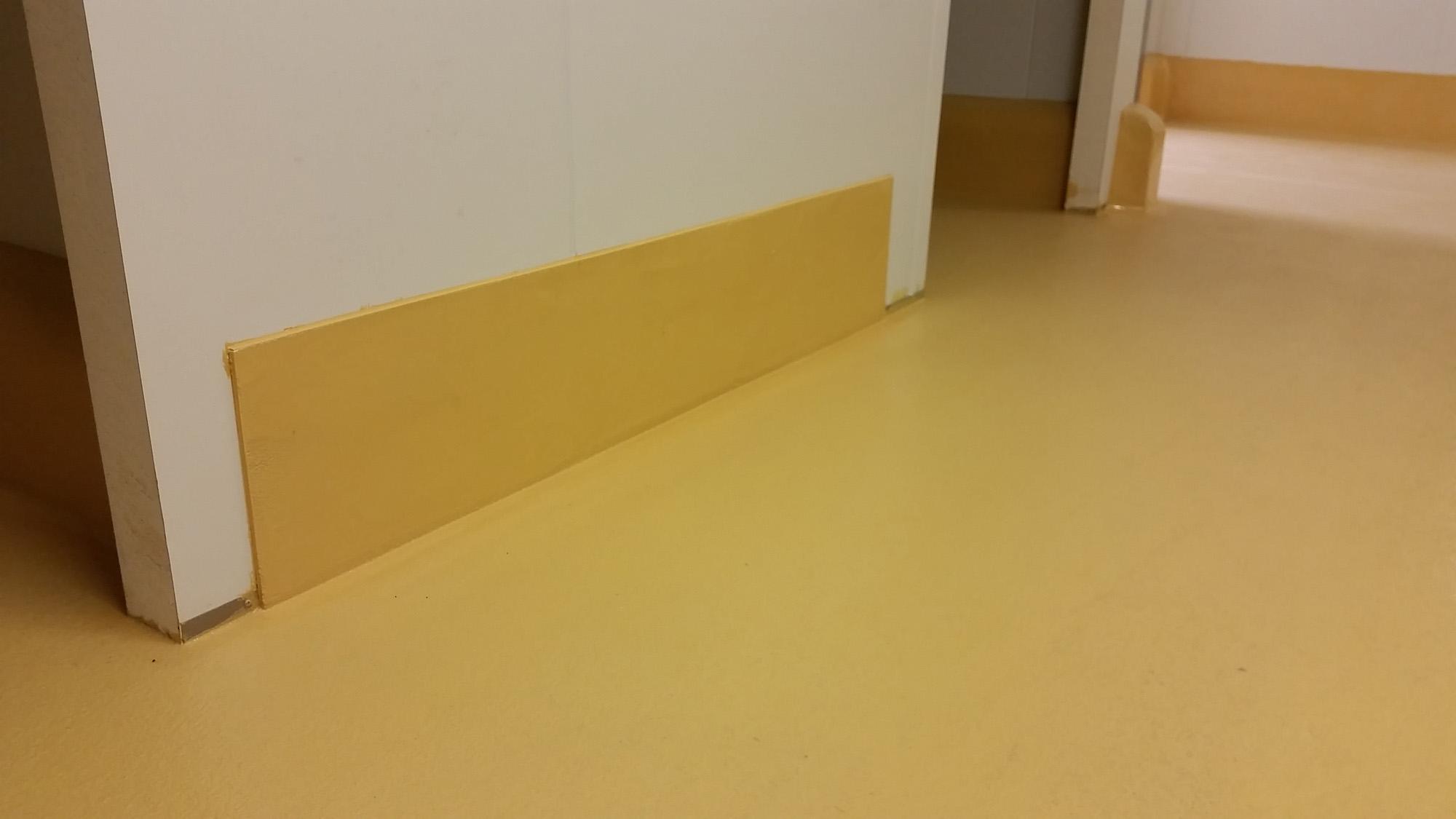 De plinten en stootranden worden geplaatst en afgewerkt met hetzelfde product als het vloersysteem. Deze kunnen zowel in een rechte als in een holle hoek verkregen worden en zijn volledig naadloos.