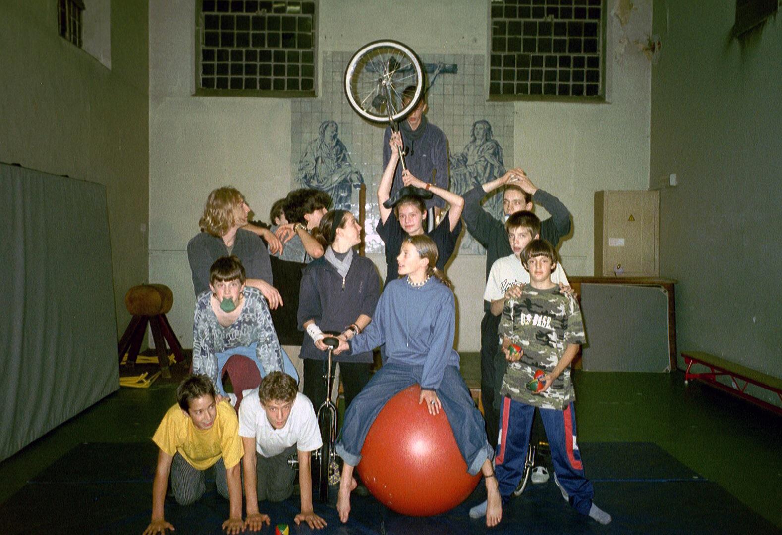 De allereerste circusles in de turnzaal van 'De Luchtballon'. Er waren 6 leerlingen.