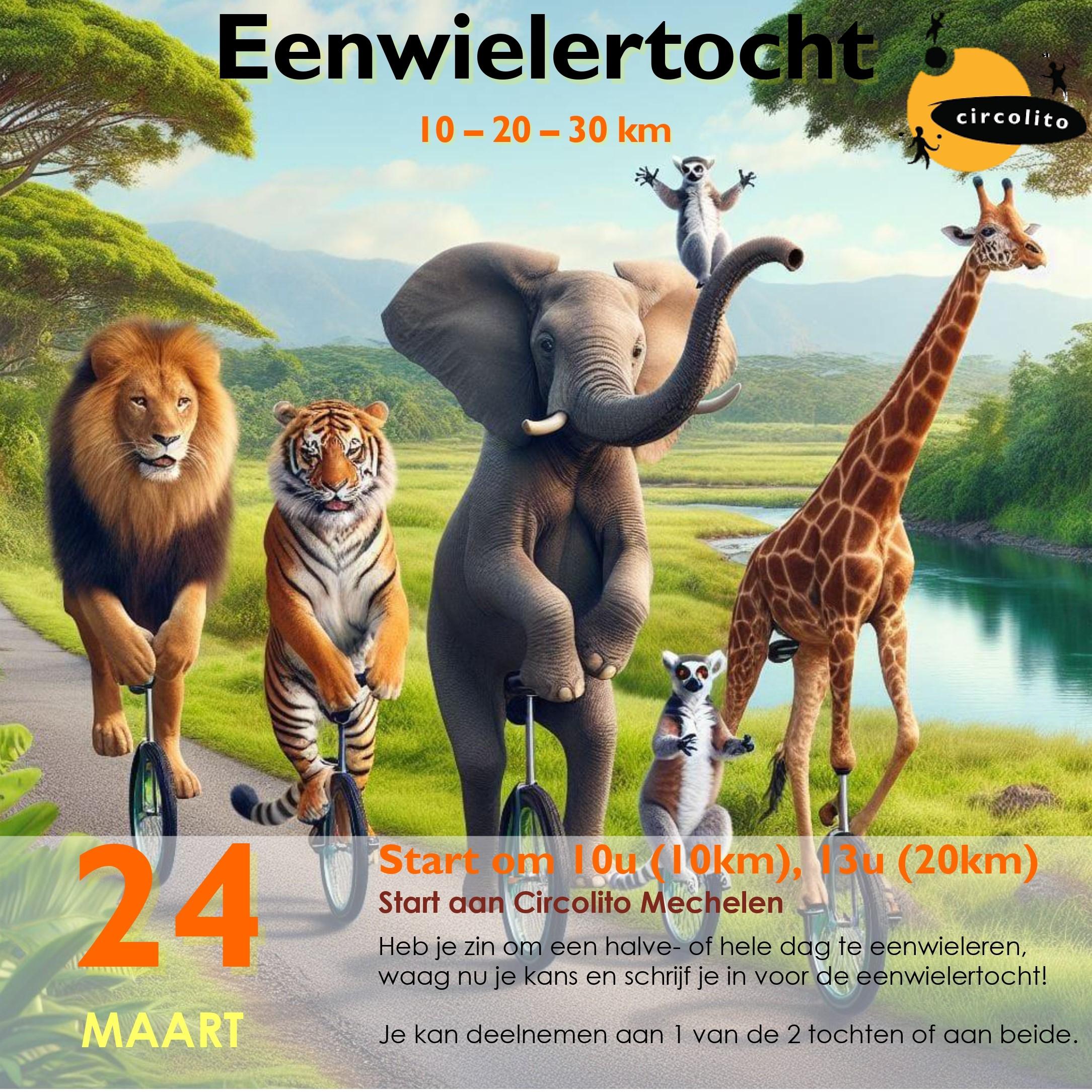 Zondag 2 april organiseren we een eenwielertocht voor gevorderde eenwieleraars (9+)!