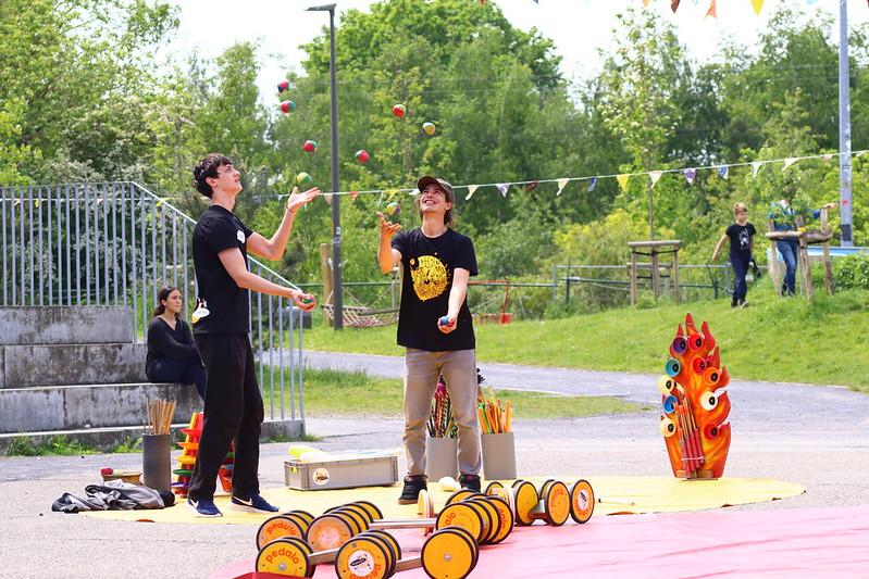 Jard (assistent lesgever bij Circus Punt) en Jelle (lesgever bij Circolito) brengen 'take your time'. Een act waar jongleren én acrobatie aan bod zal komen, en waar vooral ook rustig de tijd voor genomen wordt.