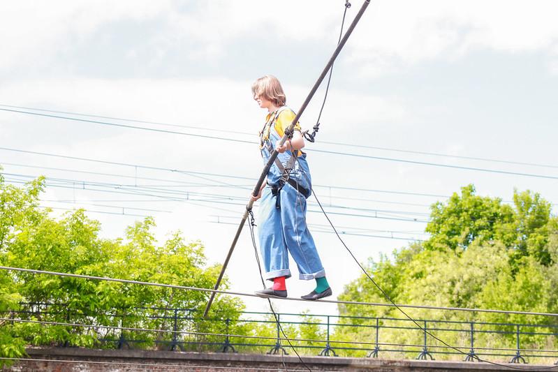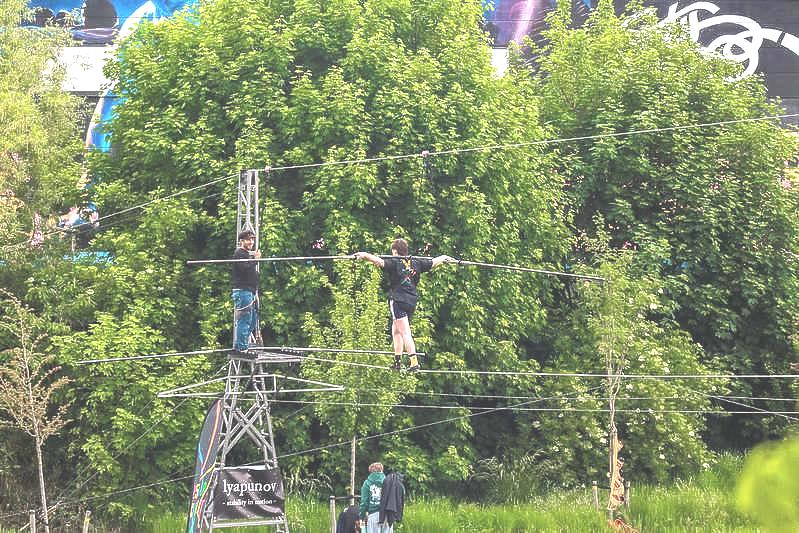 Op zondagvoormiddag organiseerden we samen met Lyapunovde oversteek van de Dijle. Koorddansers met een beetje ervaring en geen hoogtevrees, konden over een kabel wandelen, 6 meter boven het wateroppervlak! Het was van 2015 geleden dat we dat nog deden, hopelijk kunnen we het in de toekomst nog eens doen (en hopelijk duurt dat niet opnieuw 10 jaar :-))