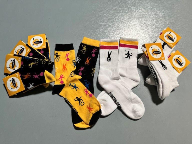 Tijdens het CircoliTOONweekend werd ook hét nieuwe Circolito-artikel gelanceerd, nl de Circolitosokken! Je kan kiezen voor de witte sportsokken, met jongleur en acrobaat, of voor het geel zwarte paar met allerlei artiesten op. Ben jij niet zo voor een 'mismatched' paar van één gele en één zwarte sok? Geen probleem, je kan gewoon twee paar kopen, he! ;-)