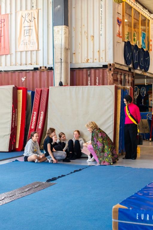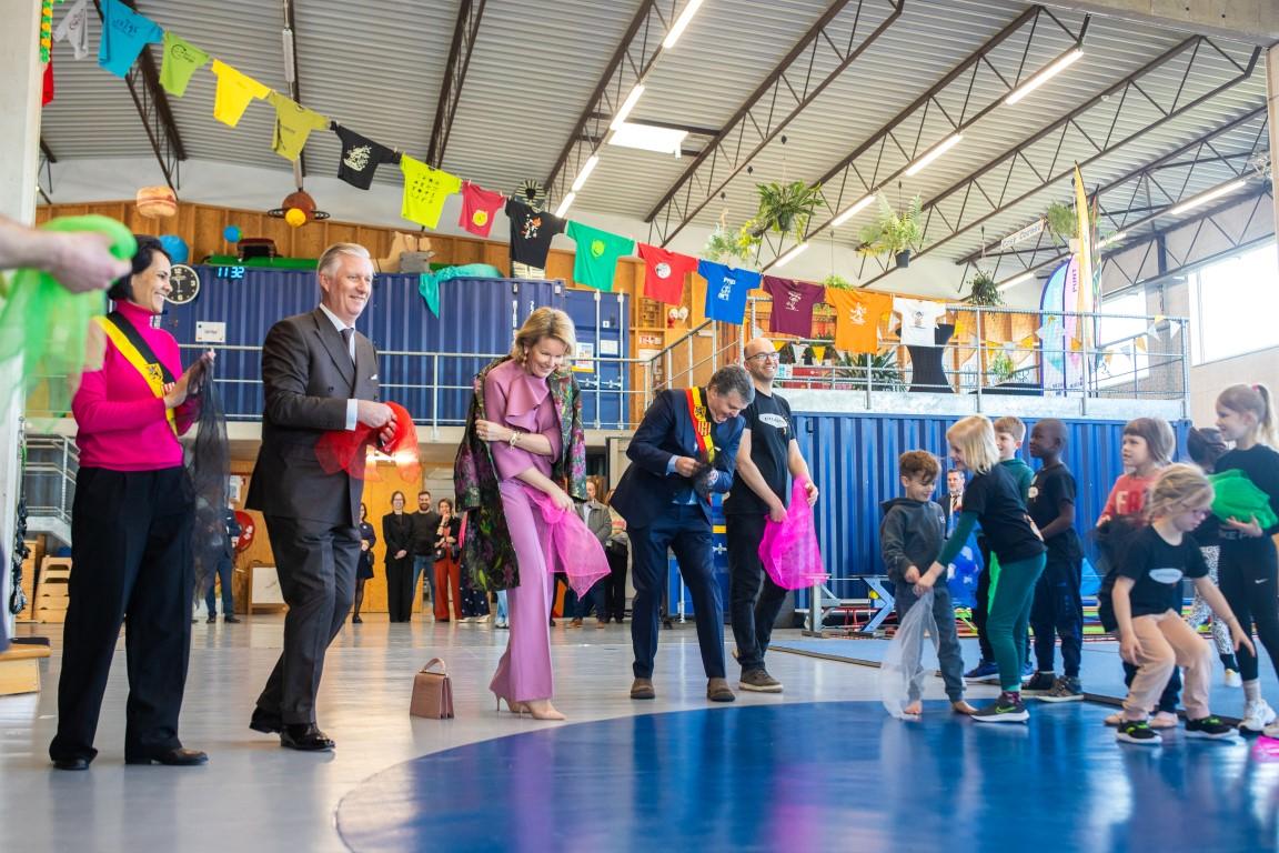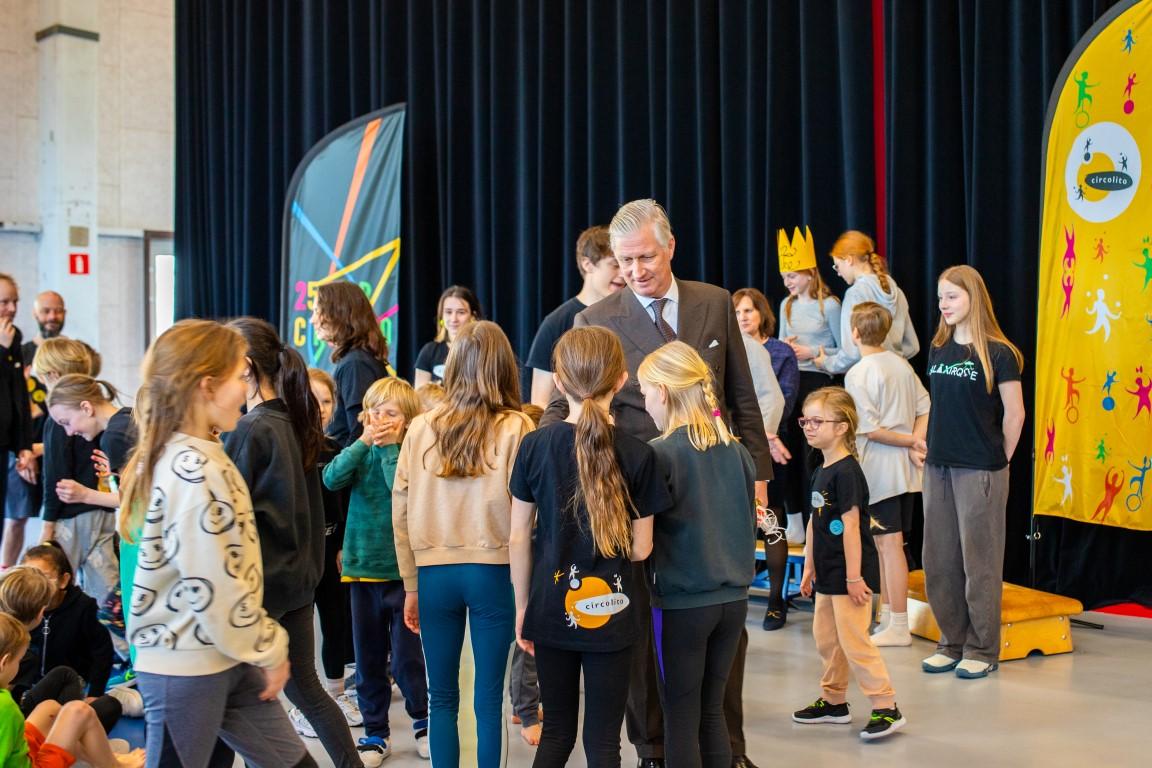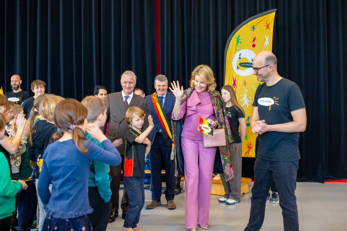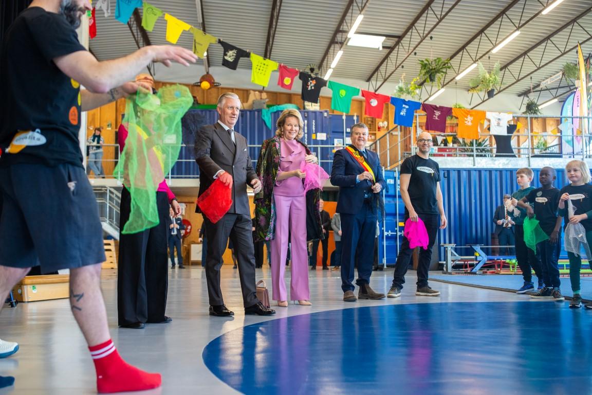 De koning en de koningin hadden nog een korte babbel met de assistent-lesgevers van deze week: de vrijwilligers Billie, Mattis en Patrycja. Patrycja is onze internationale vrijwilliger uit Polen die een heel jaar bij Circolito meewerkt om veel op te steken van hoe het er hier aan toe gaat. Er was meteen al een klik met koningin Mathilde, aangezien de mama van de koningin ook Poolse was.