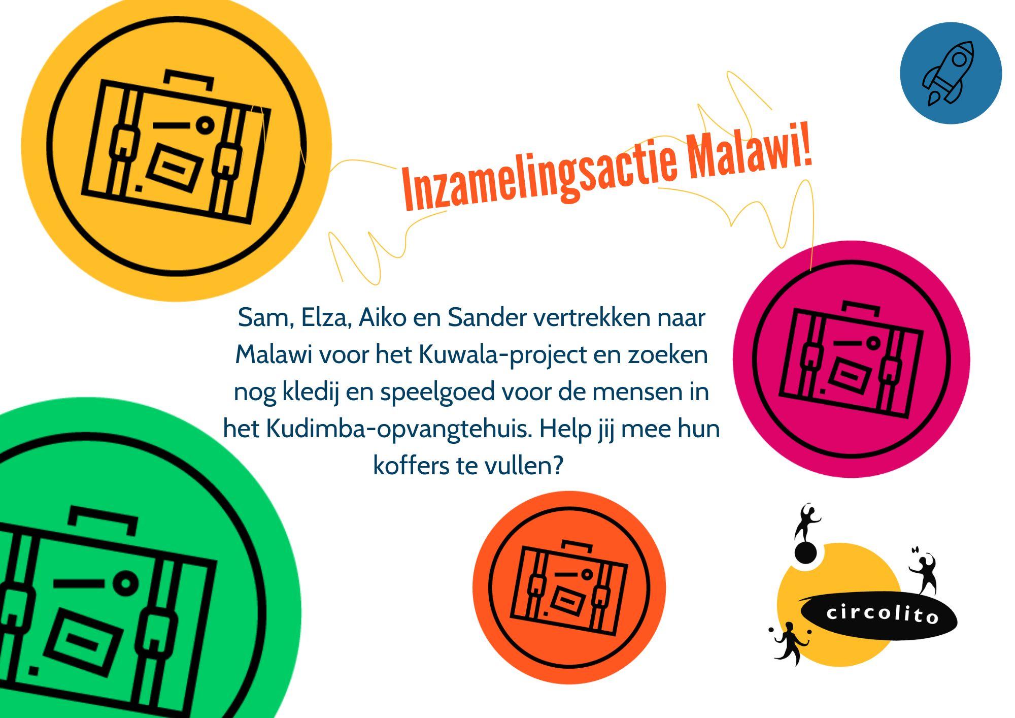 Sam, Elza, Aiko en Sander vertrekken naar Malawi voor het Kuwala-project en zoeken nog kledij en speelgoed voor de mensen in het Kudimba-opvangtehuis. Help jij mee hun koffers te vullen?