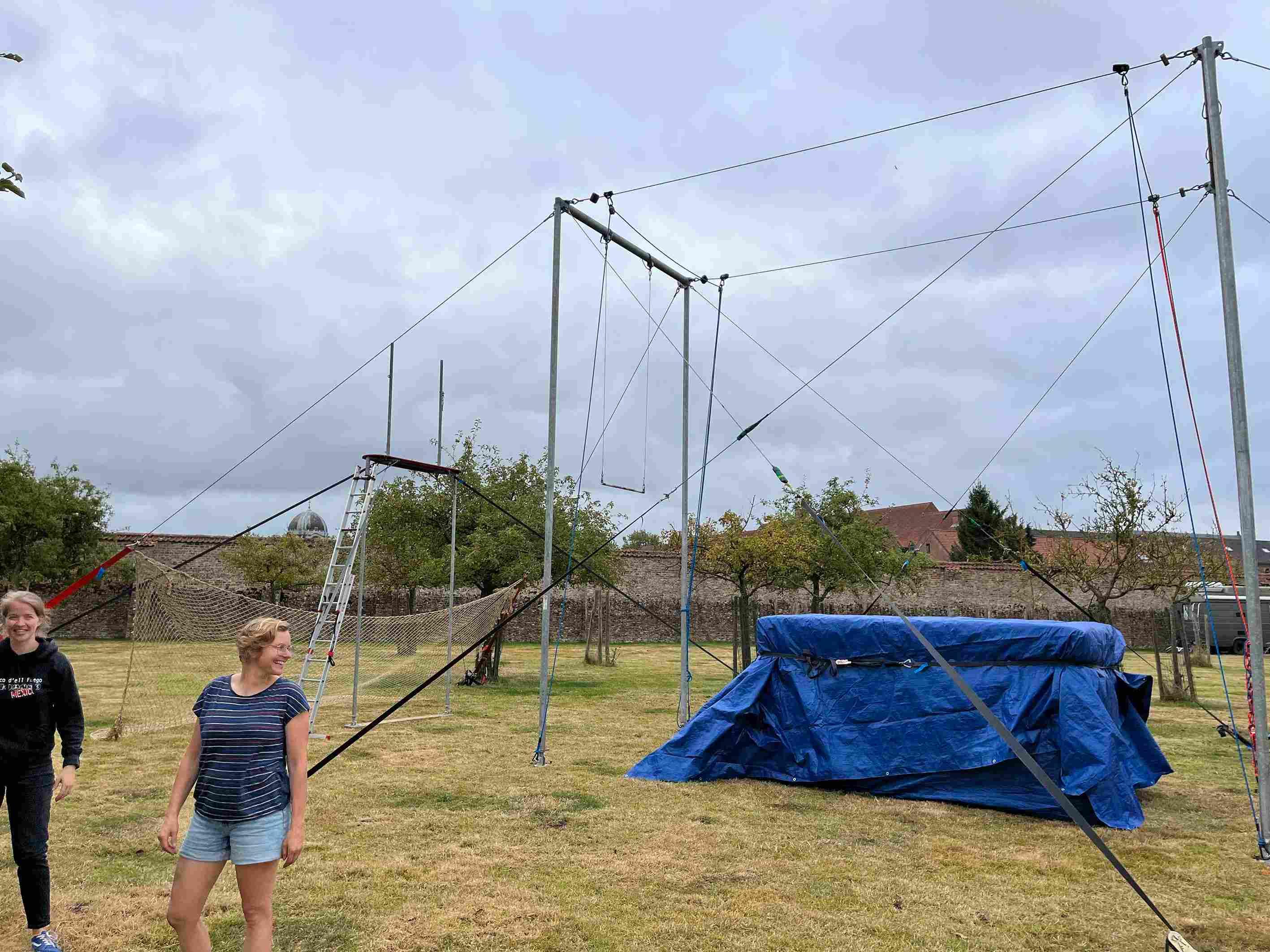 Een vliegende trapeze stelling opzetten is niet niks.