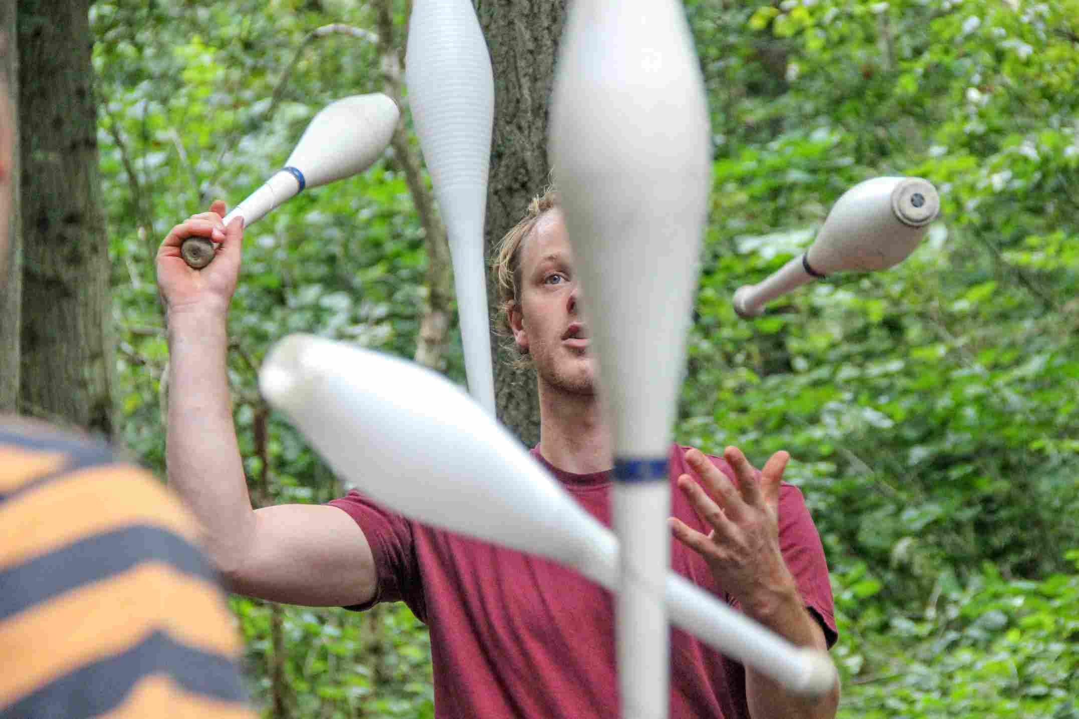 - 9.00u - 13.00u: geleide jongleerworkshops voor verschillende niveaus