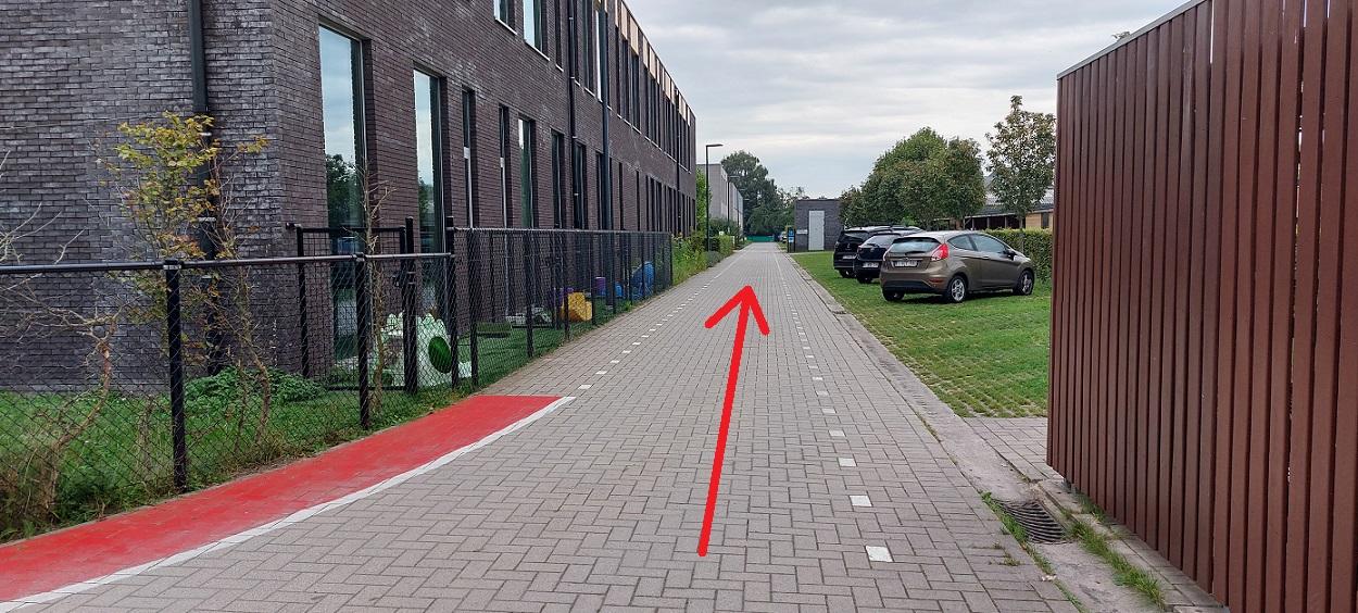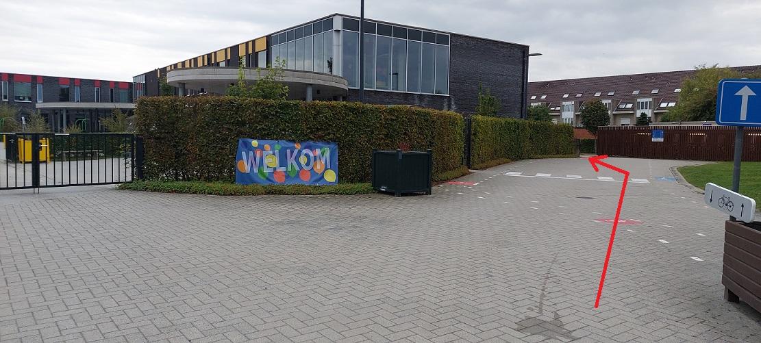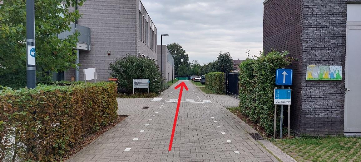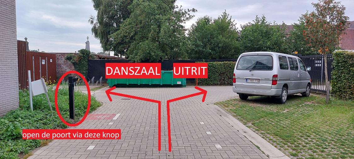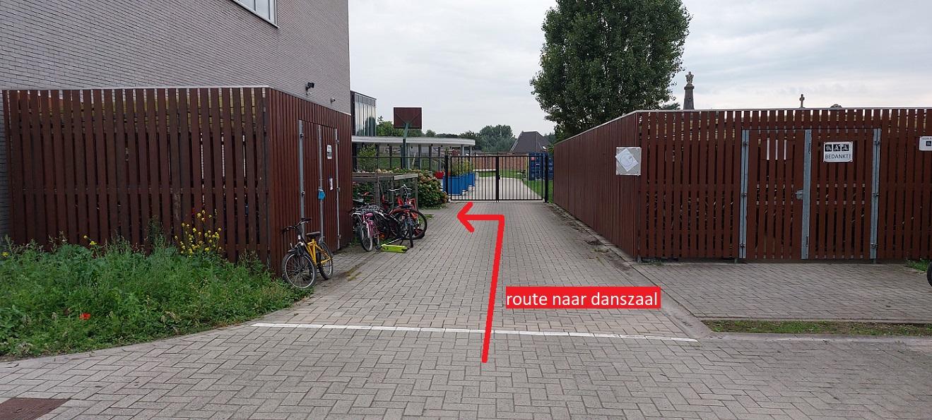 Na dat u uw kind heeft afgezet of na de dansles kan u verder rijden in dezelfde richting en via de poort aan de oude bruglaan de parking verlaten.