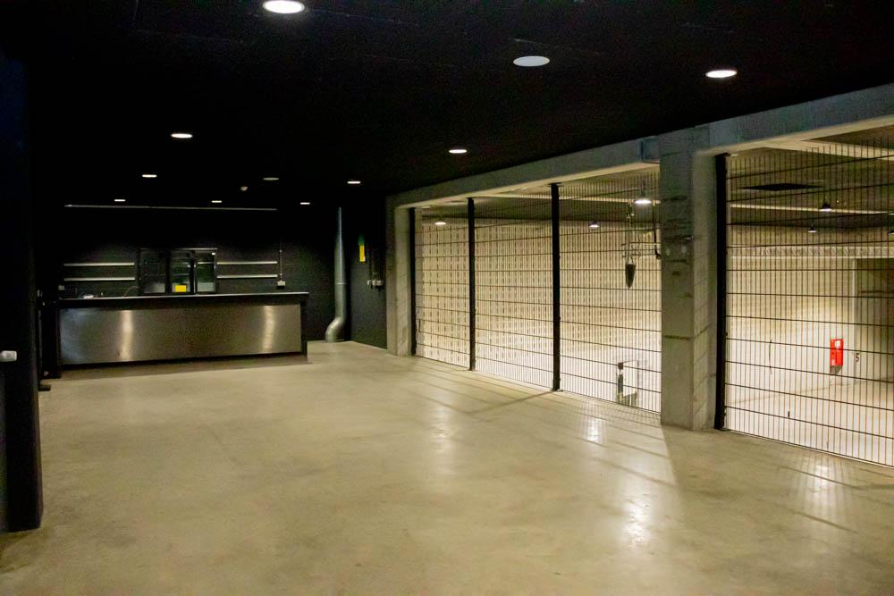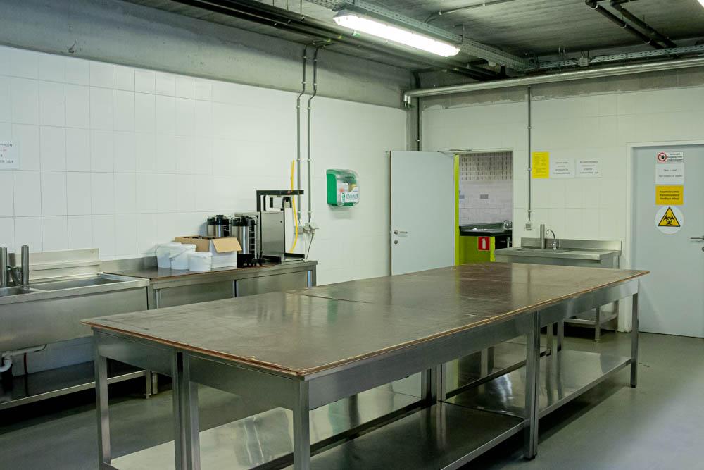 In de volledige hal zijn een ‘kleine toog’ beschikbaar met 3 tapkranen en flessenfrigo’s. In de ‘grote toog’ zijn 6 tapkranen voorzien met flessenfrigo’s. Achteraan de respectievelijke togen bevinden zich de bergruimtes voor de dranken. Tussen de kleine en grote toog situeert zich de keuken met een aparte werkruimte voor warme en koude gerechten. Voor de keuken mag gewerkt worden met een cateraar naar keuze. In de keuken bevindt zich nog een bijkomende koelcel waar dranken kunnen ondergebracht worden, teneinde deze ten allen tijde koel te kunnen houden, ook bij grote evenementen.