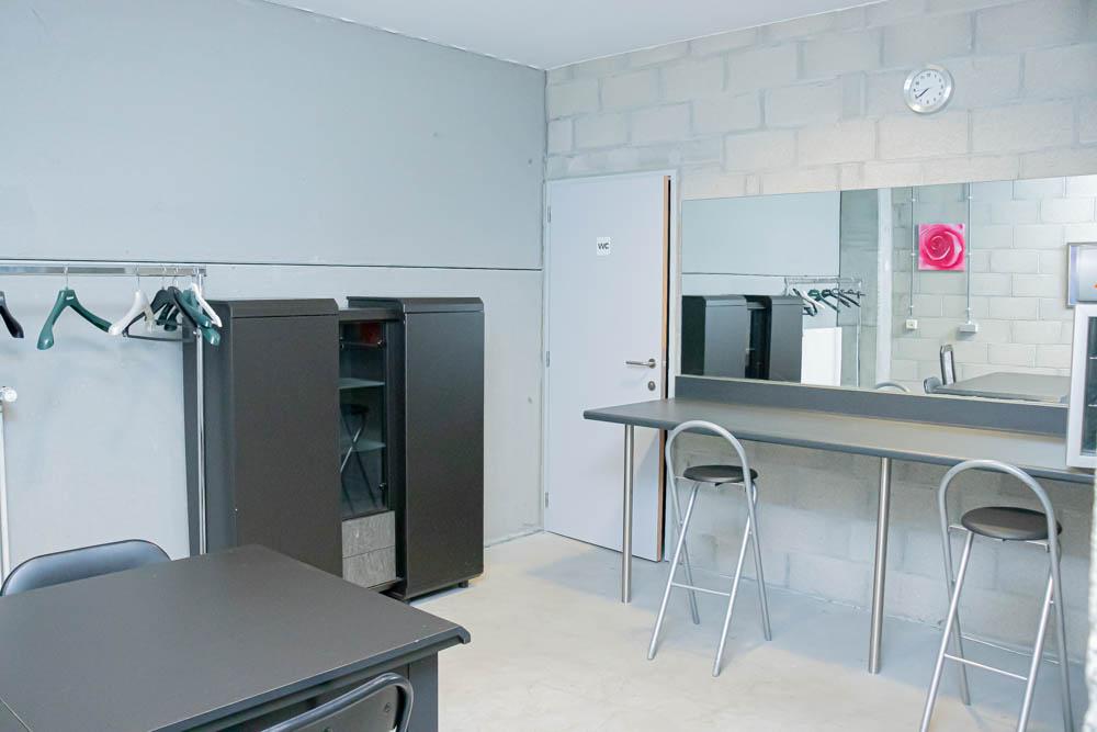 Eveneens op de 1ste verdieping bevinden zich kleedruimtes die gratis kunnen gebruikt worden bij optredens. De kleedkamers zijn volledig ingericht met ruime speiegelwand, douche, apart toilet, zithoek...kortom alles wat een artiest ook maar enigszins denkt nodig te hebben.