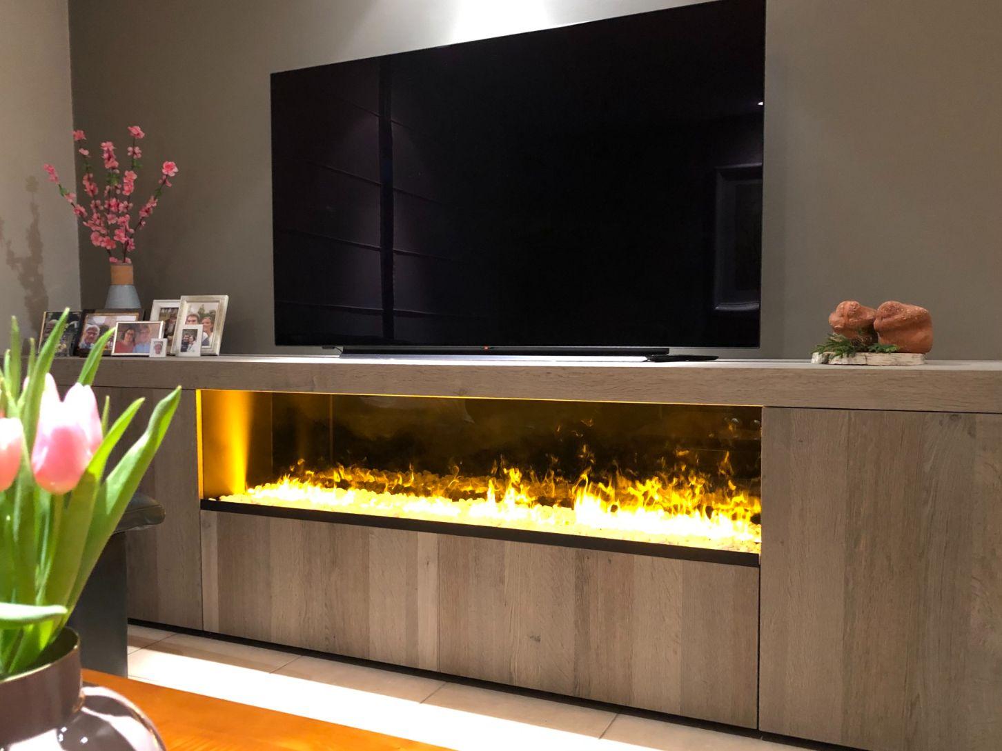 Absoluut. Onze interieurvormgevers kunnen hier bij de elektrische inbouwhaard ook perfect een haardwand met tv creëren zoals bij de gashaard of houthaard. De wensen en behoeften rond de wand worden besproken en worden met zorg uitgetekend en op die manier ook gerealiseerd.