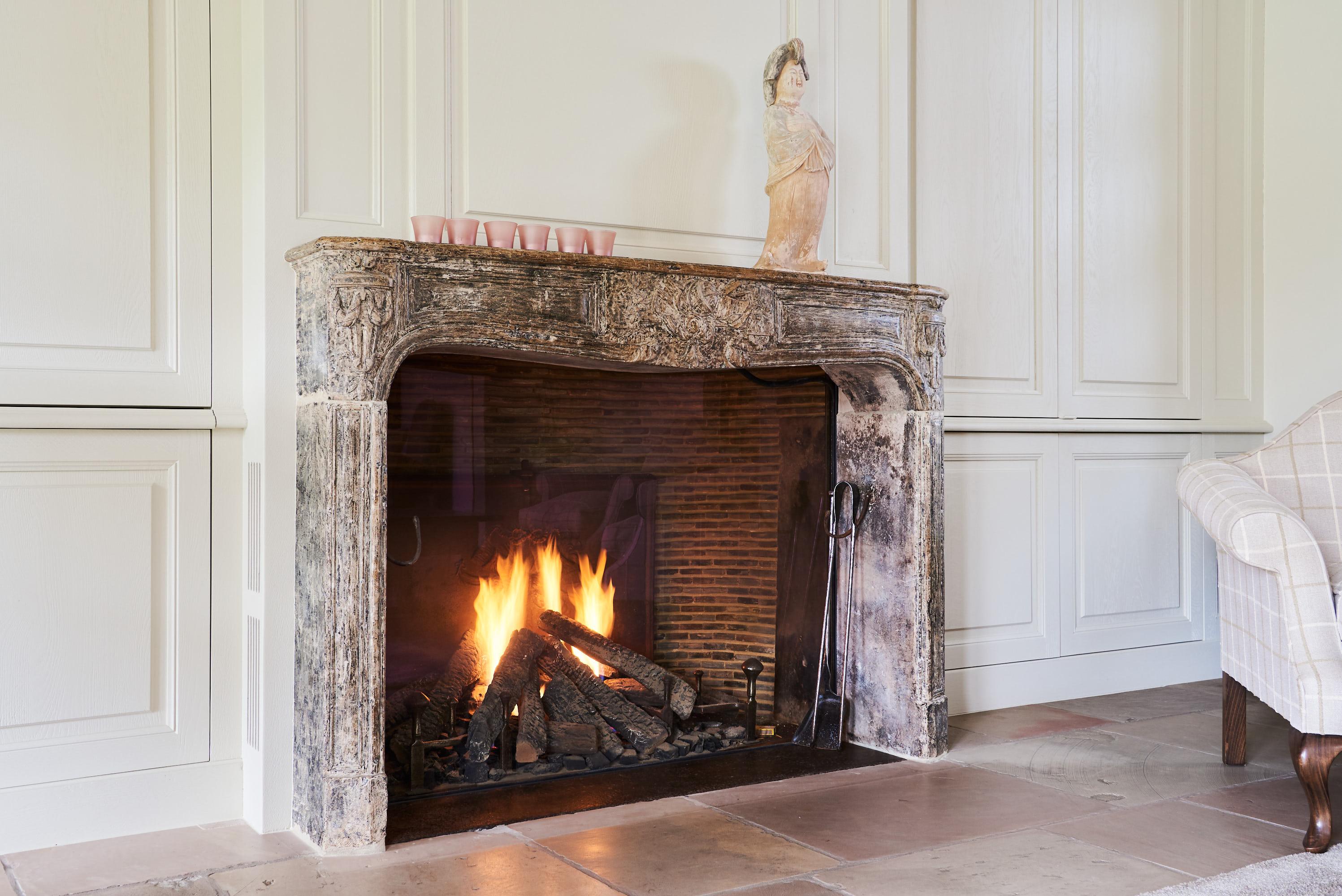 In de showroom te Waregem staat de klassieke sierschouw met gashaard Cosyflame Incognito (85 113 60 cm) met grijze pannenstrips ingemetst. Hier werd gekozen voor de Cosyflame incognito maatwerkschouw omdat deze in de antieke schouw moest worden ingewerkt.