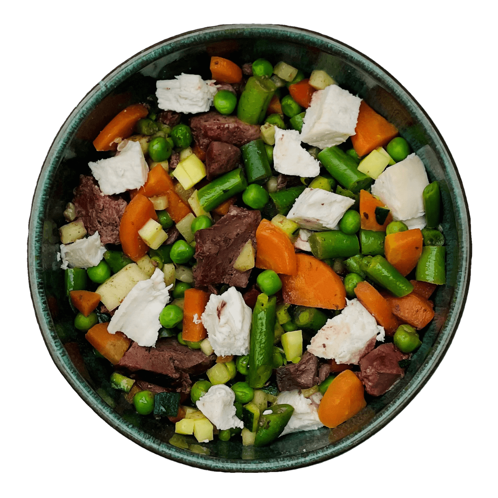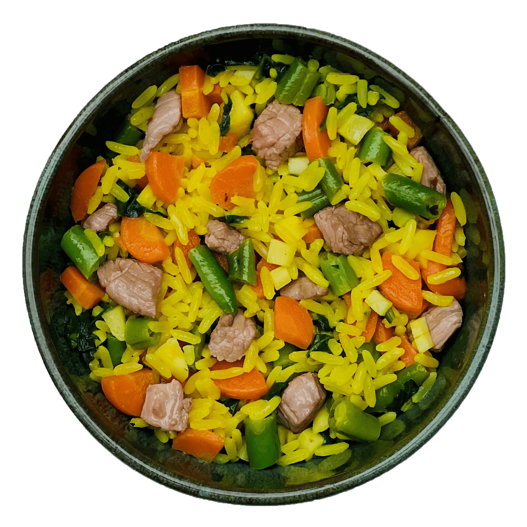 Ingrediënten: Rund, wortel, sperzieboon, rijst, pastinaak, spinazie, koolzaadolie, oregano