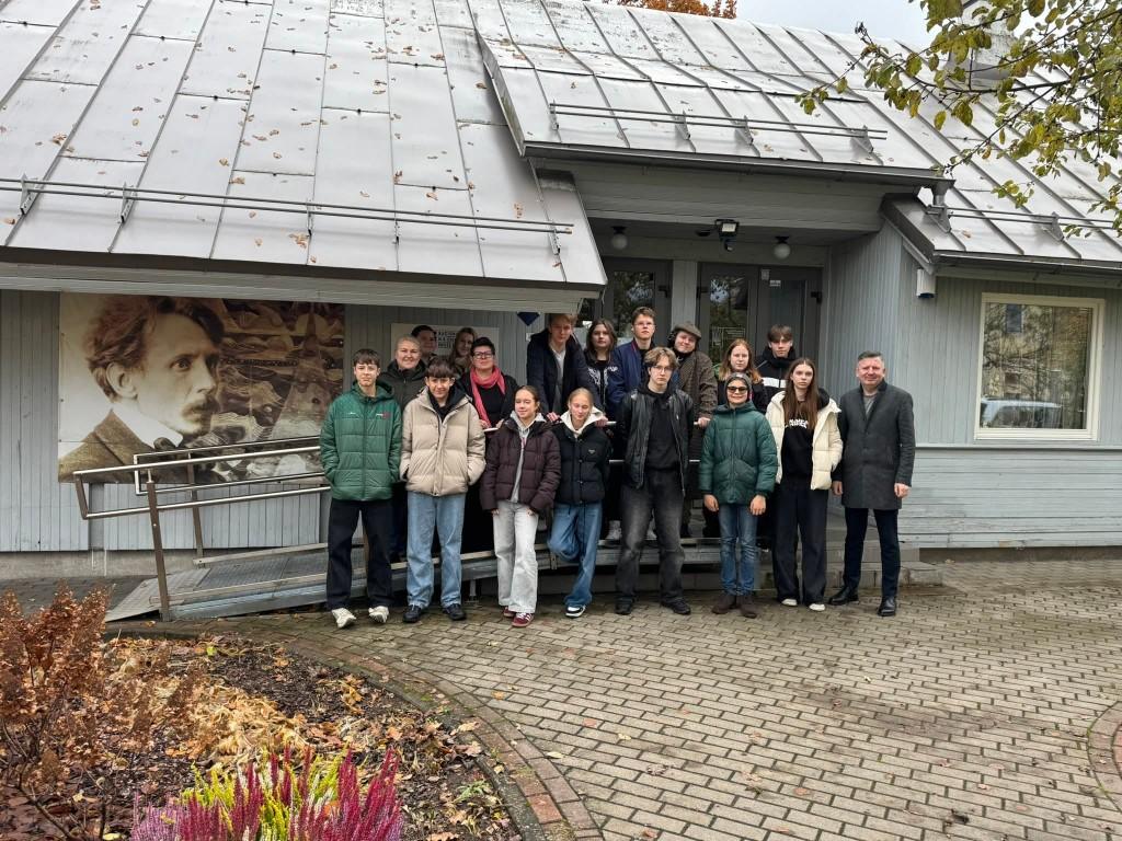 The next day we travelled to Druskininkai, the town where Čiurlionis spent his childhood. We visited his family home and held creative readings in front of the house. Students presented their best competition pieces inspired by Čiurlionis — poems, haikus, and short prose works.